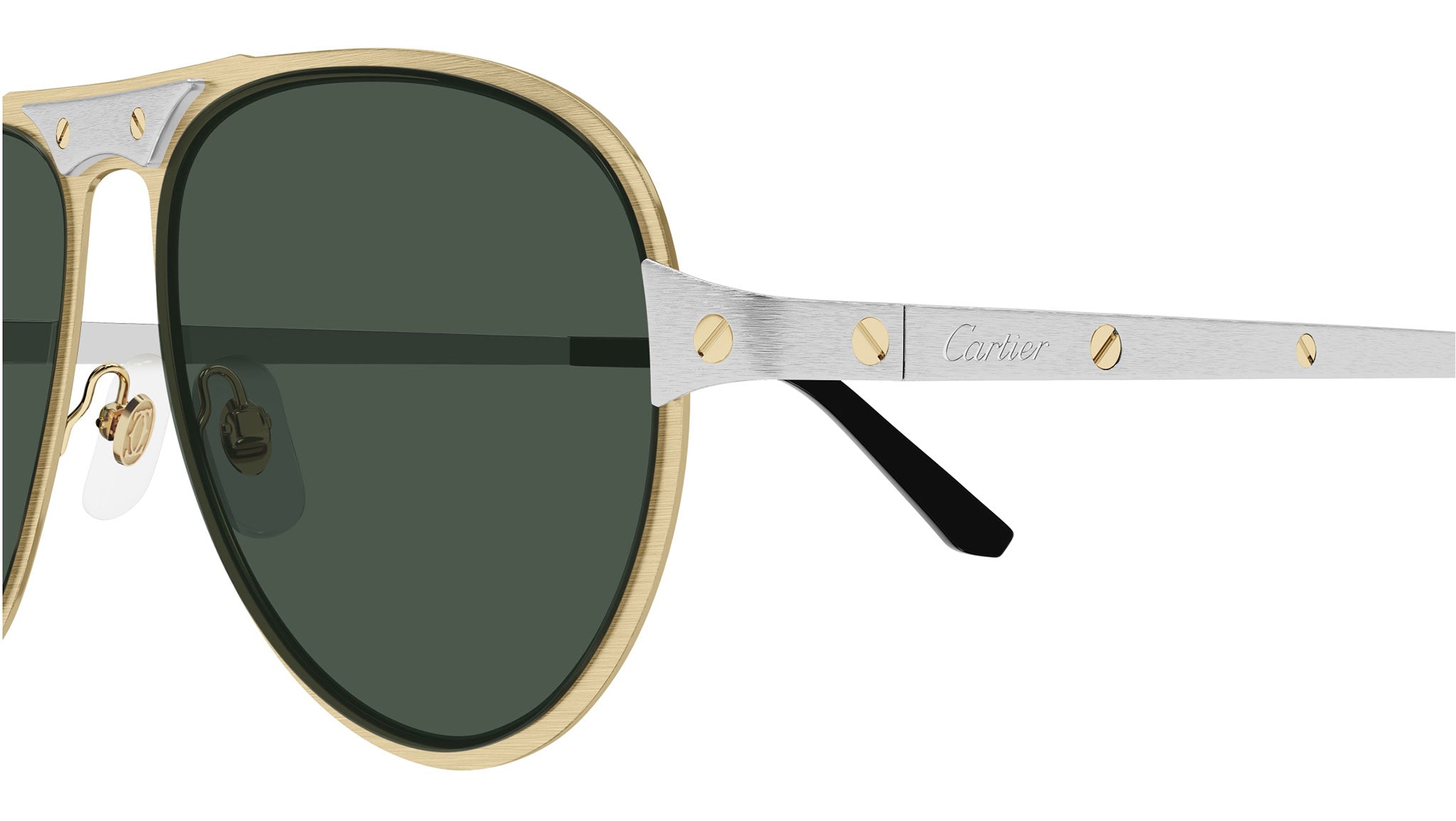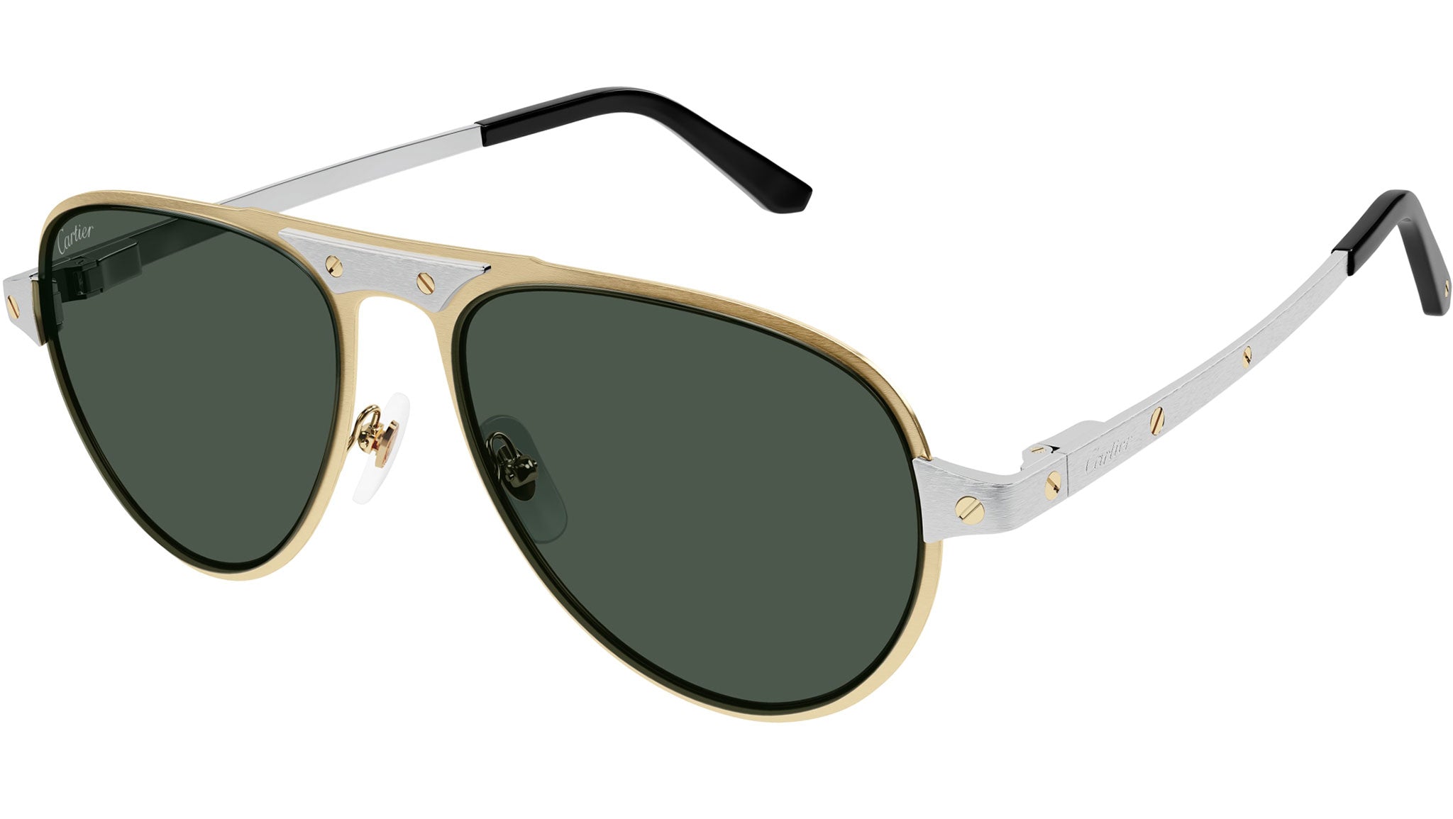 Occhiali da sole Cartier CT0533S 002 uomo con montatura aviatore in metallo platino e lenti verde. Linea: Exception. Codice modello: CT0533S. Codice colore: 002. Made in France. Rivenditore autorizzato Cartier online. Gli occhiali vengono consegnati con custodia e accessori originali e sono coperti dalla garanzia ufficiale di 12 mesi del produttore.