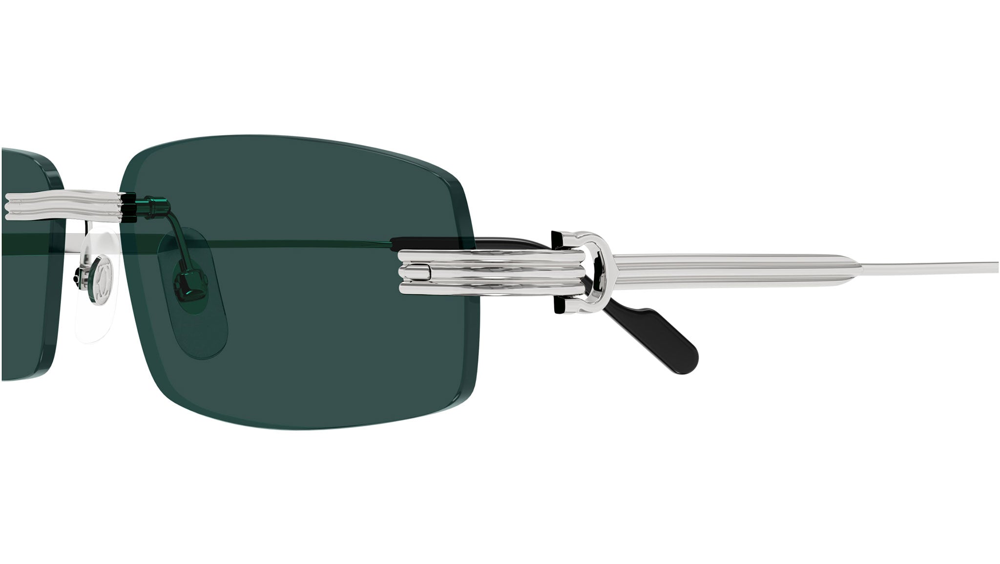 Occhiali da sole Cartier Première CT0535S 002 uomo con montatura rettangolare in metallo color platino finish satinato e lenti verde. Linea: Première de Cartier. Codice modello: CT0535S. Codice colore: 002. Made in France. Rivenditore autorizzato Cartier online. Gli occhiali vengono consegnati con custodia e accessori originali e sono coperti dalla garanzia ufficiale di 12 mesi del produttore.