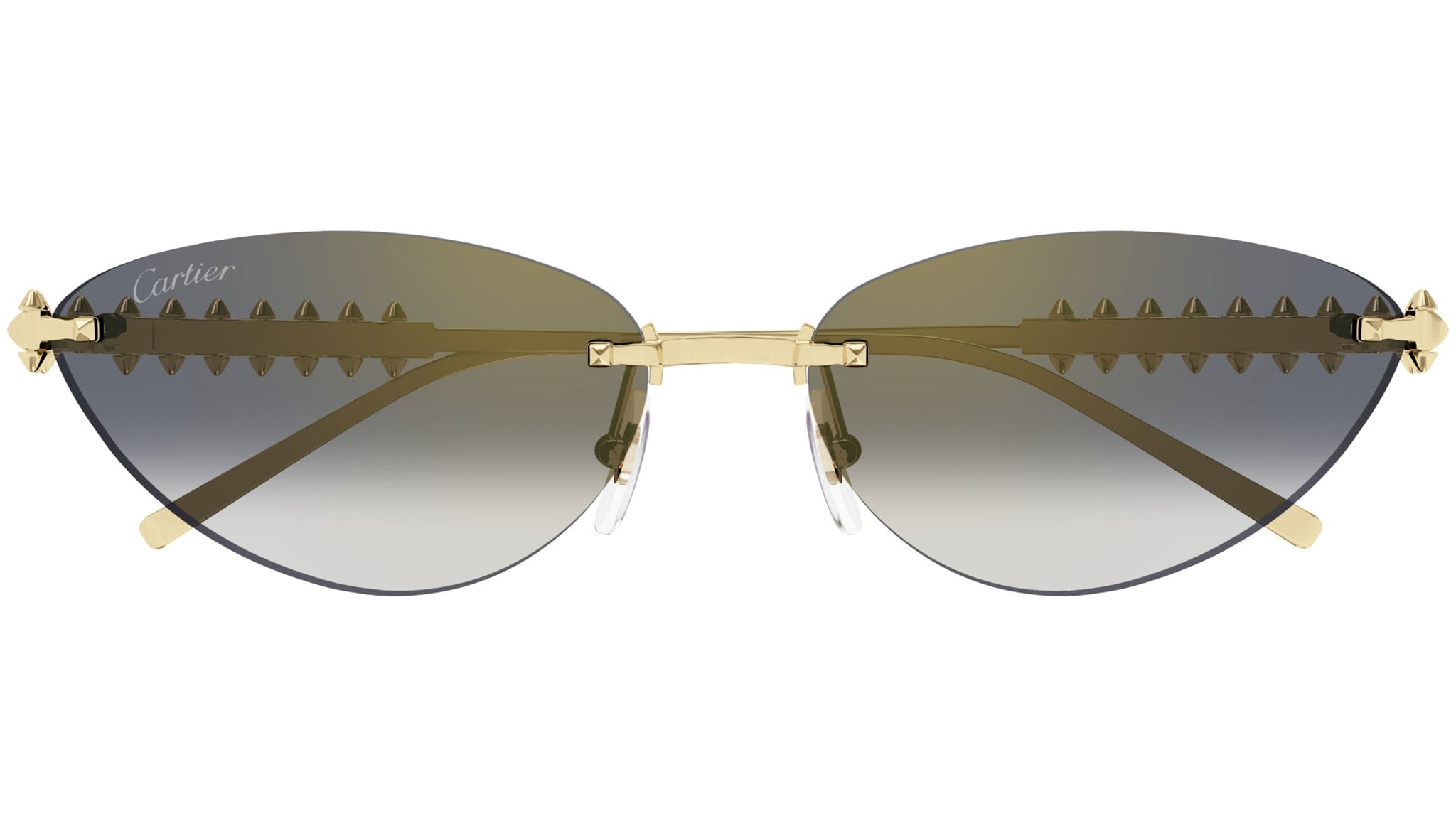 Occhiali da sole Cartier CT0543S 001 donna con montatura cat eye in metallo oro e lenti grigio sfumato con flash dorato. Linea: Exception. Codice modello: CT0543S. Codice colore: 001. Made in France. Rivenditore autorizzato Cartier online. Gli occhiali vengono consegnati con custodia e accessori originali e sono coperti dalla garanzia ufficiale di 12 mesi del produttore.