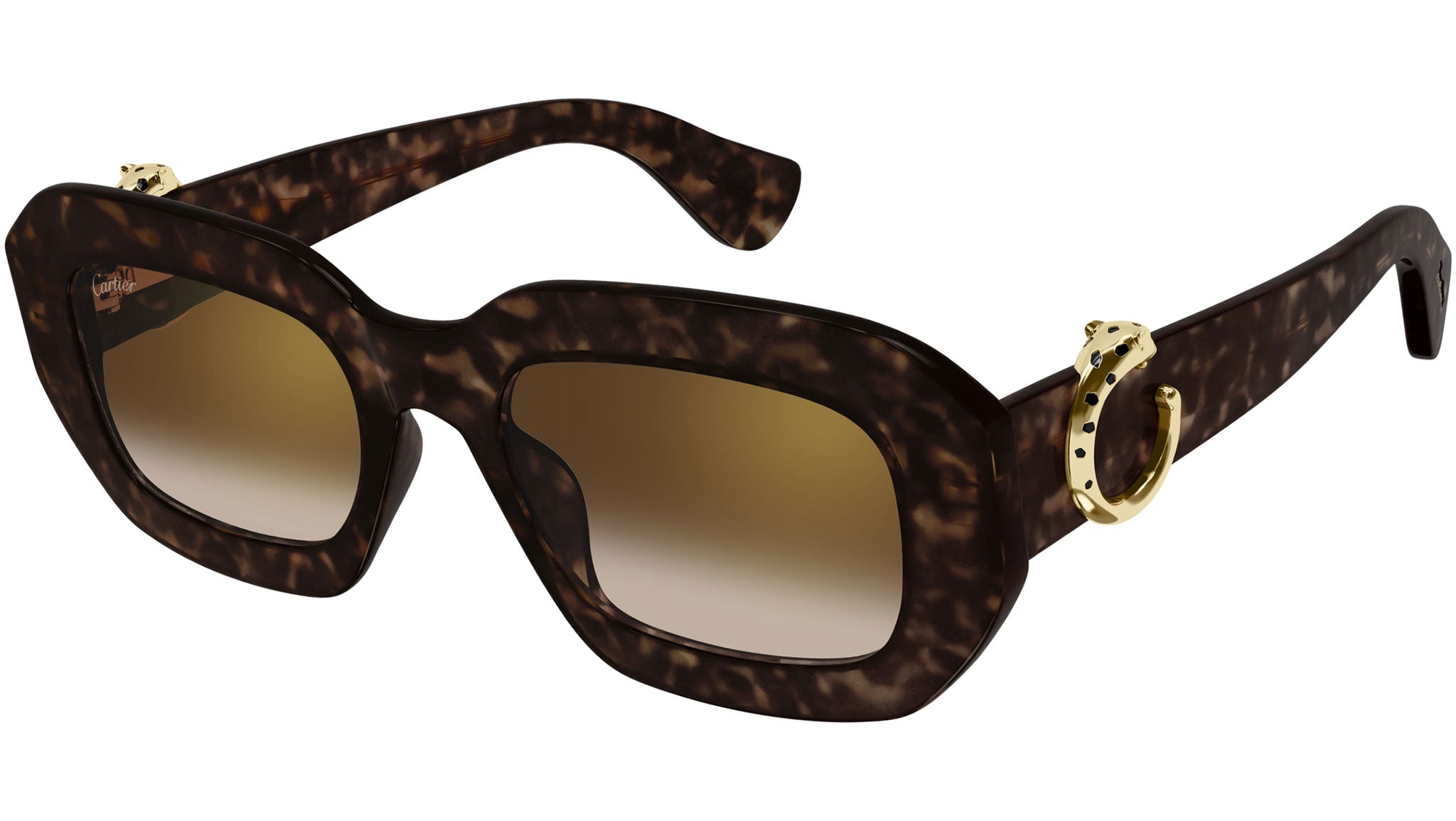 Occhiali da sole Cartier CT0546S 002 donna con montatura rettangolare in acetato riciclato avana e lenti marrone sfumato con flash oro. Linea: Core Range. Codice modello: CT0546S. Codice colore: 002. Made in Italy. Rivenditore autorizzato Cartier online. Gli occhiali vengono consegnati con custodia e accessori originali e sono coperti dalla garanzia ufficiale di 12 mesi del produttore.