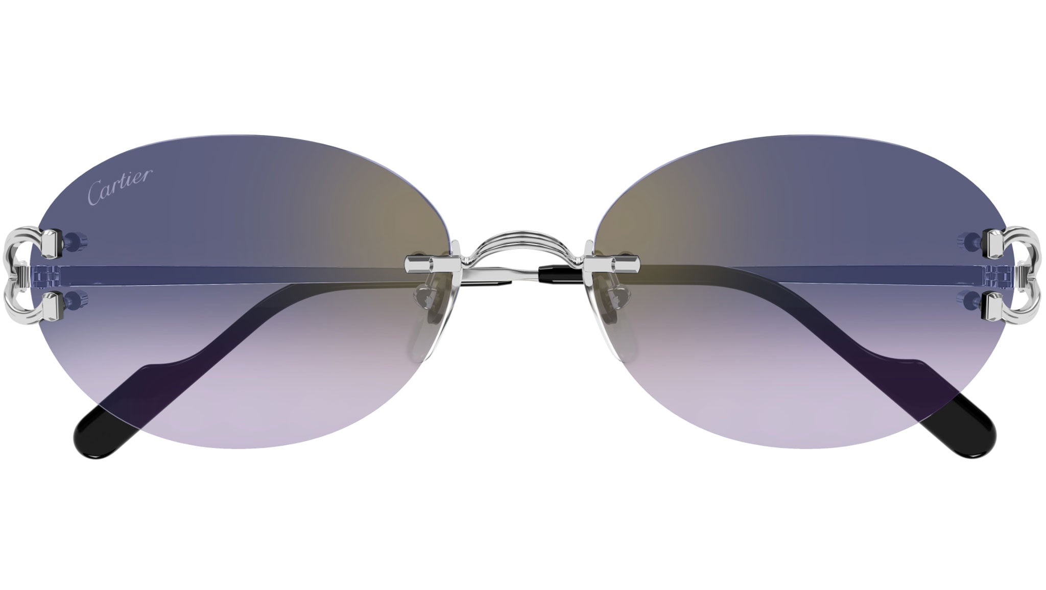 Occhiali da sole Cartier CT0551S 003 unisex con montatura ovale in metallo platino e lenti blu e rosa chiaro sfumato con un lampo dorato. Linea: Core Range. Codice modello: CT0551S. Codice colore: 003. Made in France. Rivenditore autorizzato Cartier online. Gli occhiali vengono consegnati con custodia e accessori originali e sono coperti dalla garanzia ufficiale di 12 mesi del produttore.