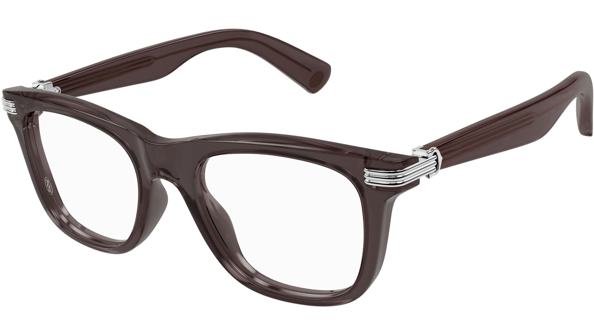 Occhiali da vista Cartier CT0558O uomo con montatura rettangolare in acetato riciclato viola e lenti demo. Linea: Core Range. Codice modello: CT0558O. Codice colore calibro 53: 010. Calibro 55: 001. Made in Italy. Rivenditore autorizzato Cartier online. Gli occhiali vengono consegnati con custodia e accessori originali e sono coperti dalla garanzia ufficiale di 12 mesi del produttore.