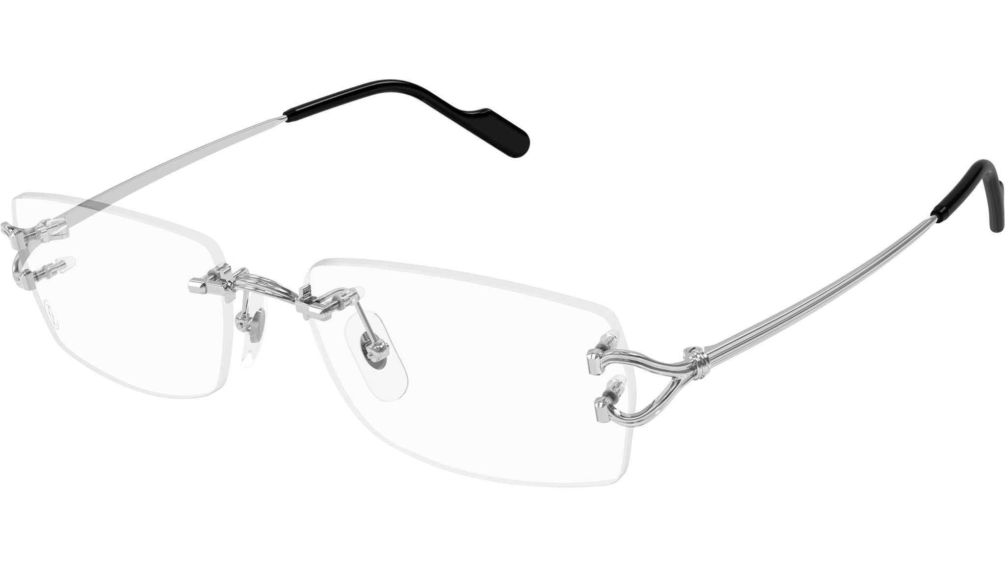Occhiali da vista Cartier CT0563O 002 uomo con montatura rettangolare in metallo platino e lenti demo. Linea: Core Range. Codice modello: CT0563O. Codice colore: 002. Made in France. Rivenditore autorizzato Cartier online. Gli occhiali vengono consegnati con custodia e accessori originali e sono coperti dalla garanzia ufficiale di 12 mesi del produttore.