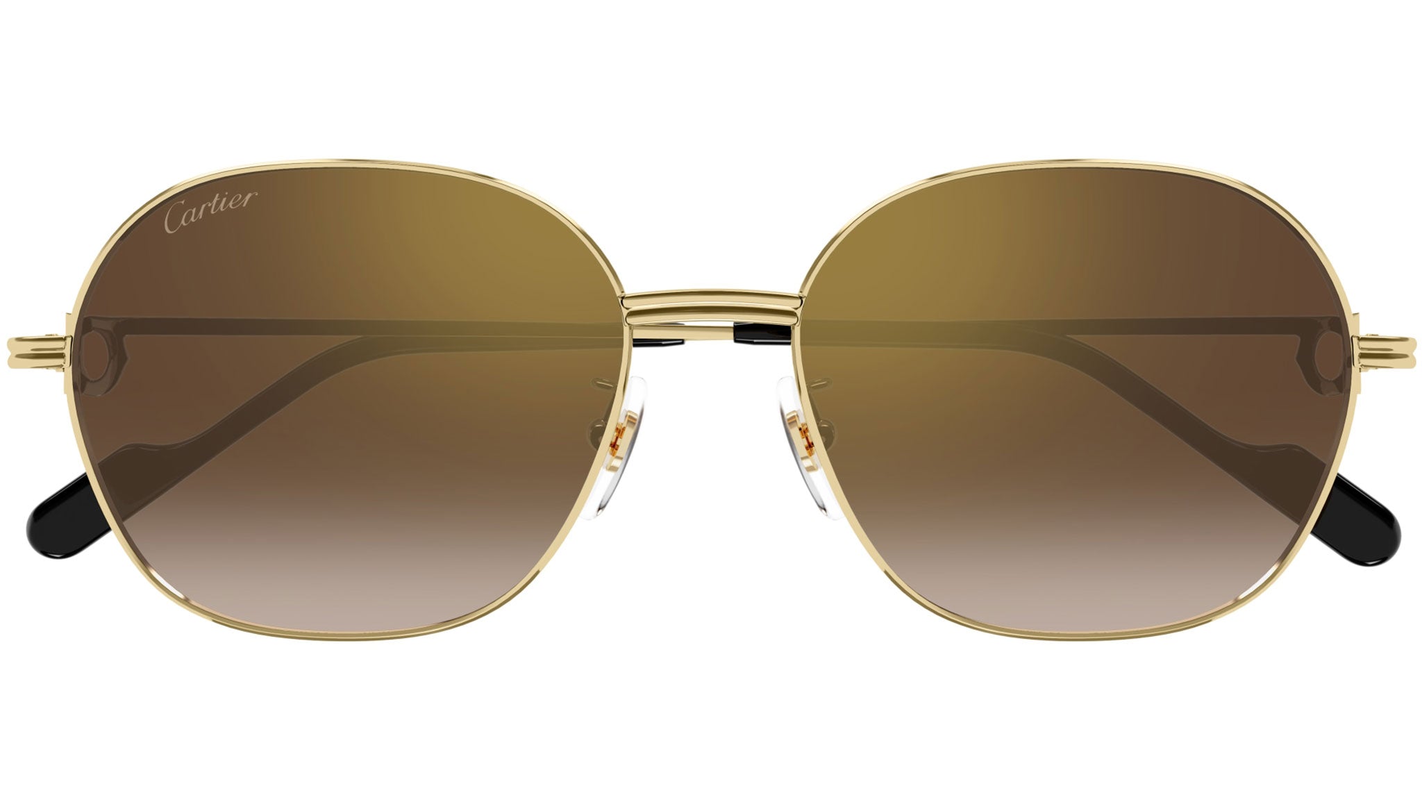 Occhiali da sole Cartier CT0569SA 002 donna con montatura rettangolare in metallo oro e lenti marrone sfumato con flash oro. Linea: Core Range. Codice modello: CT0569SA. Codice colore: 002. Made in France. Rivenditore autorizzato Cartier online. Gli occhiali vengono consegnati con custodia e accessori originali e sono coperti dalla garanzia ufficiale di 12 mesi del produttore.