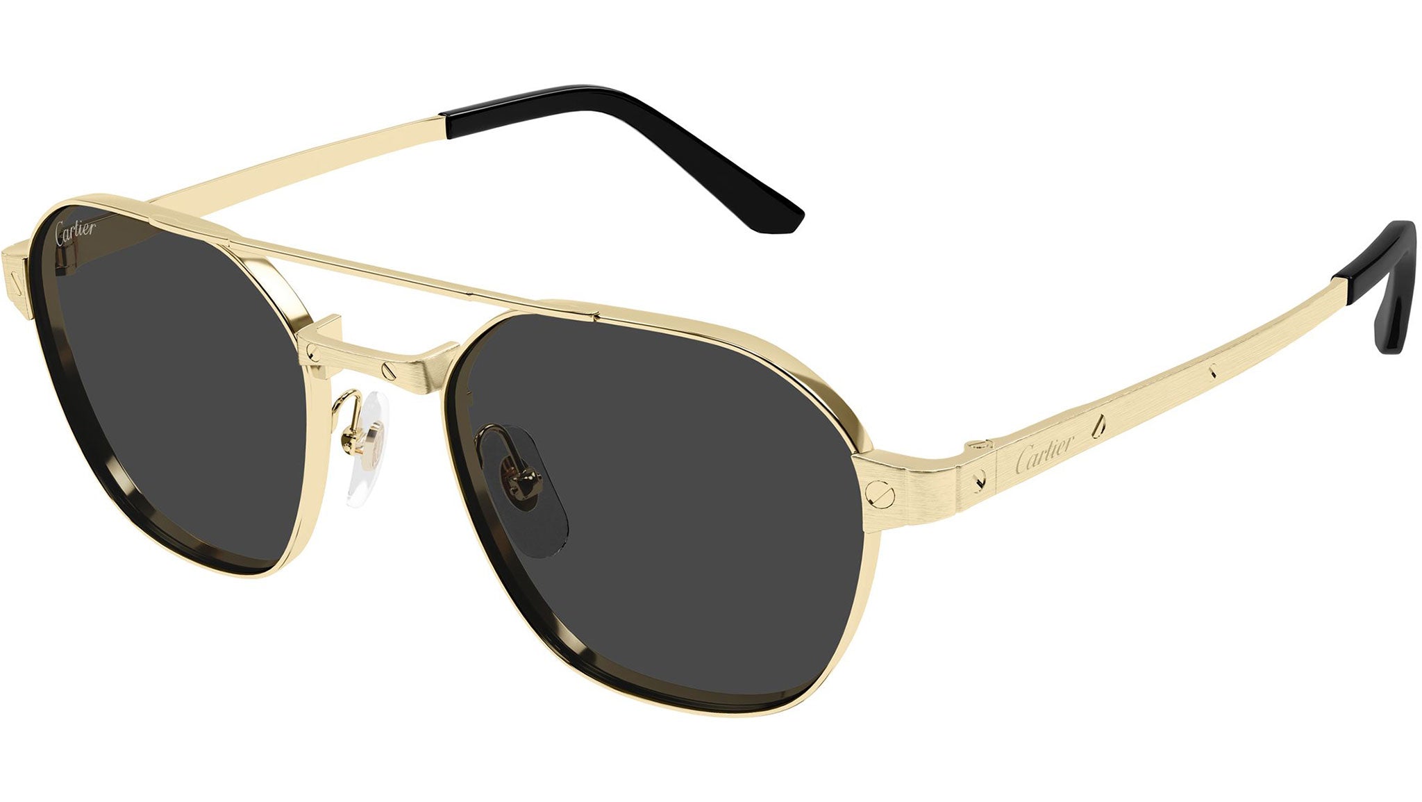 Occhiali da sole Cartier CT0571S 001 uomo con montatura rettangolare in metallo color oro satinato satinato e lenti nero polarizzato. Linea: Exception. Codice modello: CT0571S. Codice colore: 001. Made in France. Rivenditore autorizzato Cartier online. Gli occhiali vengono consegnati con custodia e accessori originali e sono coperti dalla garanzia ufficiale di 12 mesi del produttore.