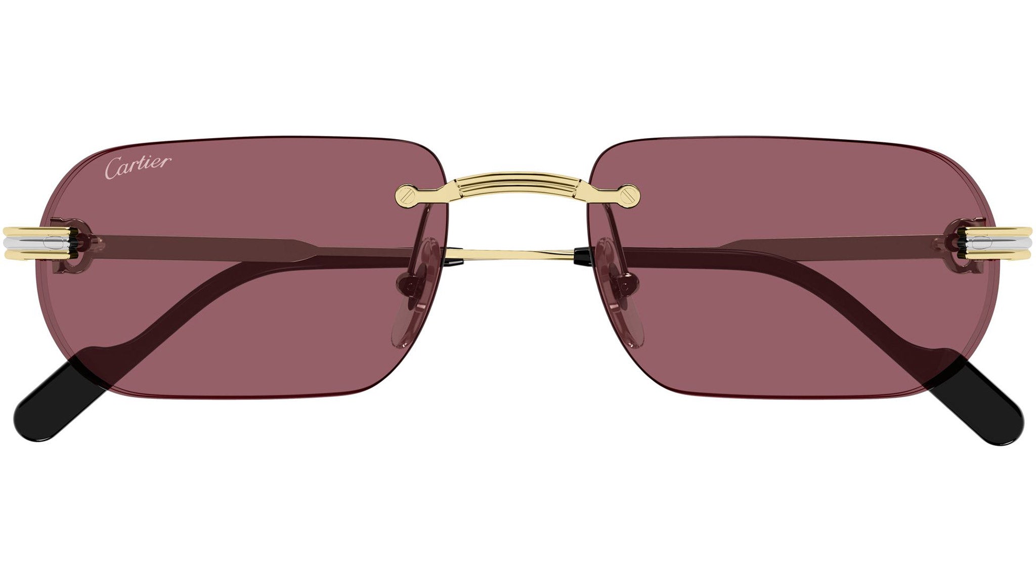 Occhiali da sole Cartier CT0577S 004 uomo con montatura rettangolare in metallo color oro finitura levigata e platino satinato e lenti bordeaux. Linea: Exception. Codice modello: CT0577S. Codice colore: 004. Made in France. Rivenditore autorizzato Cartier online. Gli occhiali vengono consegnati con custodia e accessori originali e sono coperti dalla garanzia ufficiale di 12 mesi del produttore.