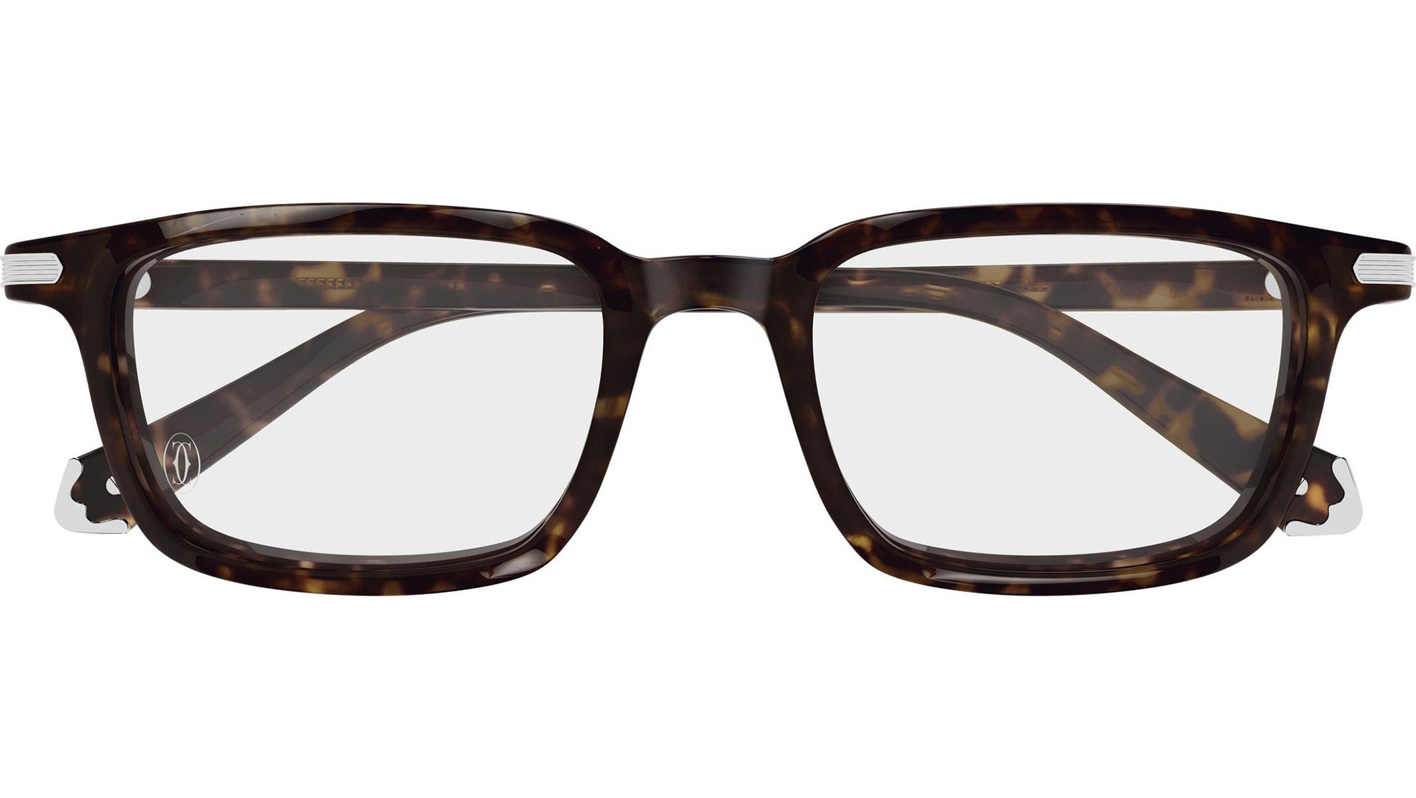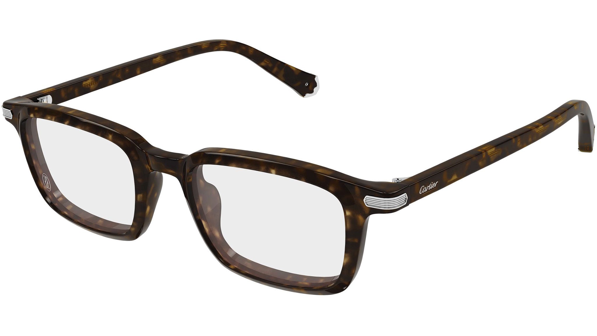 Occhiali da vista Cartier CT0586O uomo con montatura rettangolare in acetato riciclato tartaruga scuro e lenti demo. Linea: Contemporary. Codice modello: CT0586O. Codice colore calibro 53: 006. Calibro 51: 004. Made in Italy. Rivenditore autorizzato Cartier online. Gli occhiali vengono consegnati con custodia e accessori originali e sono coperti dalla garanzia ufficiale di 12 mesi del produttore.