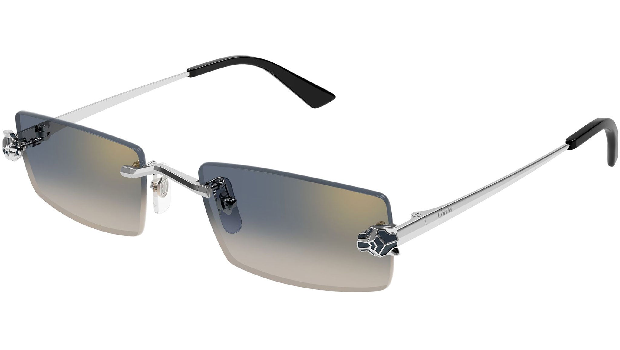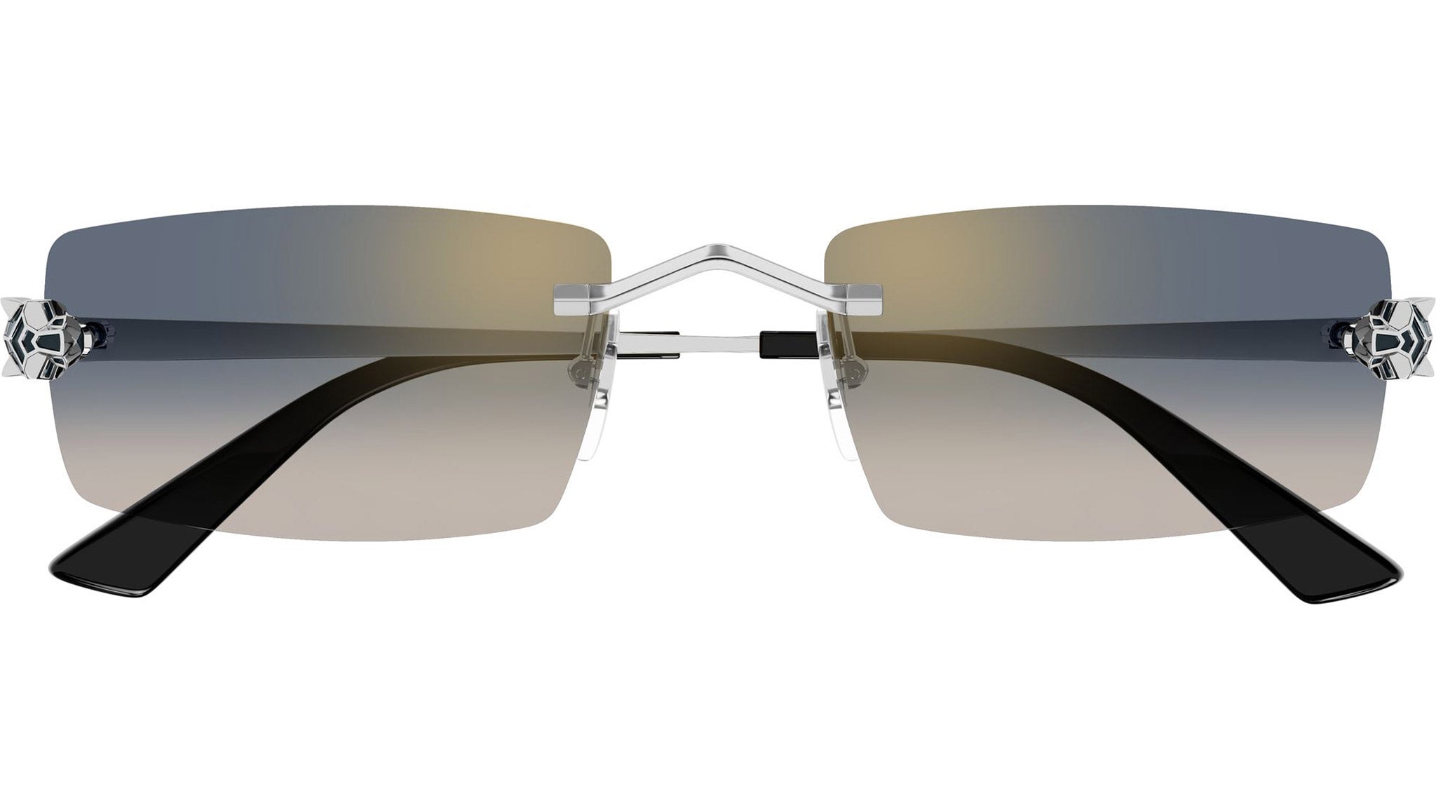 Occhiali da sole Cartier CT0598S 002 unisex con montatura rettangolare in metallo color platino finish satinato e lenti grigio verdastro e marrone chiaro sfumati con flash dorato. Linea: Exception. Codice modello: CT0598S. Codice colore: 002. Made in Italy. Rivenditore autorizzato Cartier online. Gli occhiali vengono consegnati con custodia e accessori originali e sono coperti dalla garanzia ufficiale di 12 mesi del produttore.