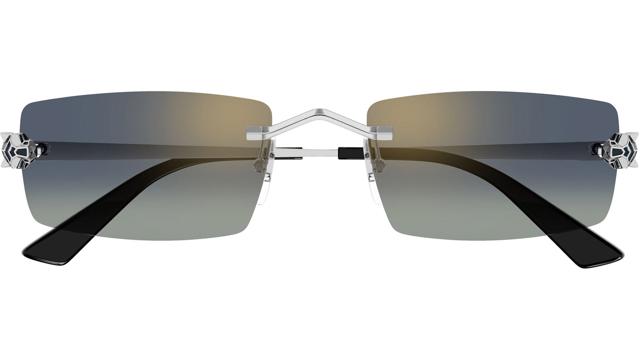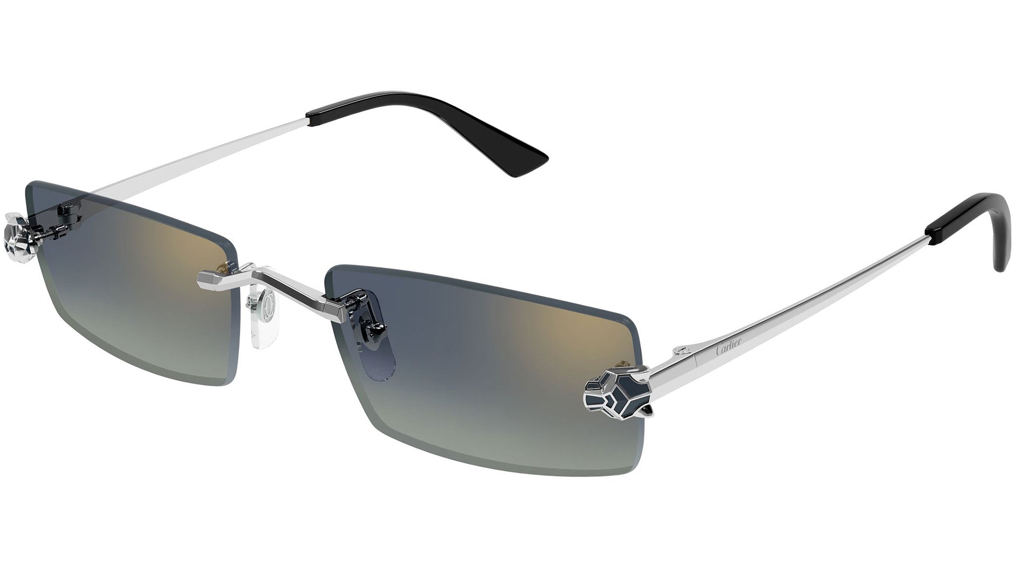 Occhiali da sole Cartier CT0598S 003 unisex con montatura rettangolare in metallo color platino finish satinato e lenti blu scuro e blu chiaro sfumati con flash dorato. Linea: Exception. Codice modello: CT0598S. Codice colore: 003. Made in Italy. Rivenditore autorizzato Cartier online. Gli occhiali vengono consegnati con custodia e accessori originali e sono coperti dalla garanzia ufficiale di 12 mesi del produttore.