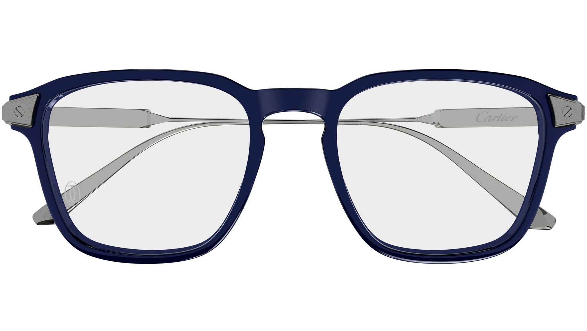 Occhiali da vista Cartier CT0611O 002 uomo con montatura rettangolare in acetato riciclato color blu intenso con terminali in finitura rutenio spazzolata e lenti demo. Linea: Exception. Codice modello: CT0611O. Codice colore: 002. Made in Japan. Rivenditore autorizzato Cartier online. Gli occhiali vengono consegnati con custodia e accessori originali e sono coperti dalla garanzia ufficiale di 12 mesi del produttore.
