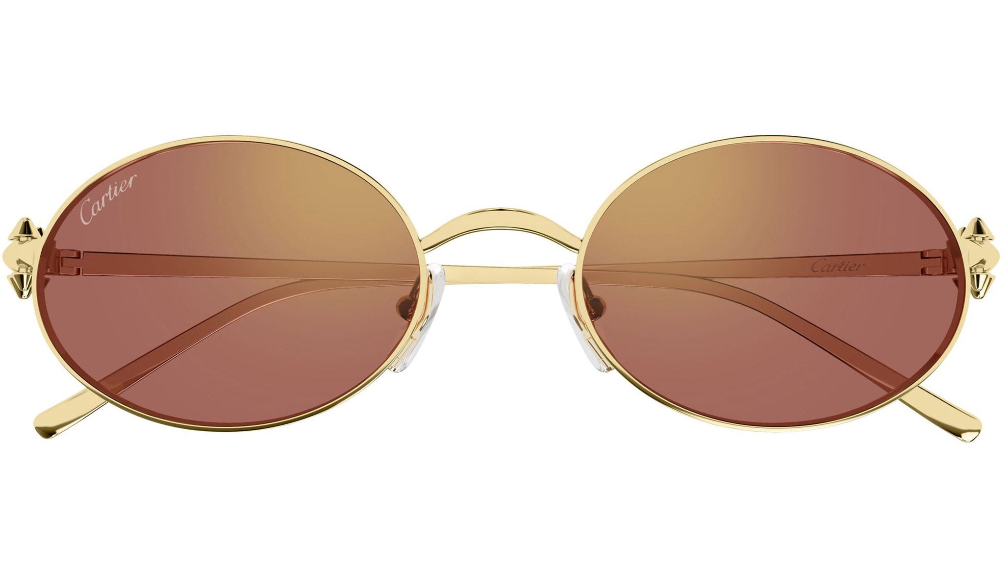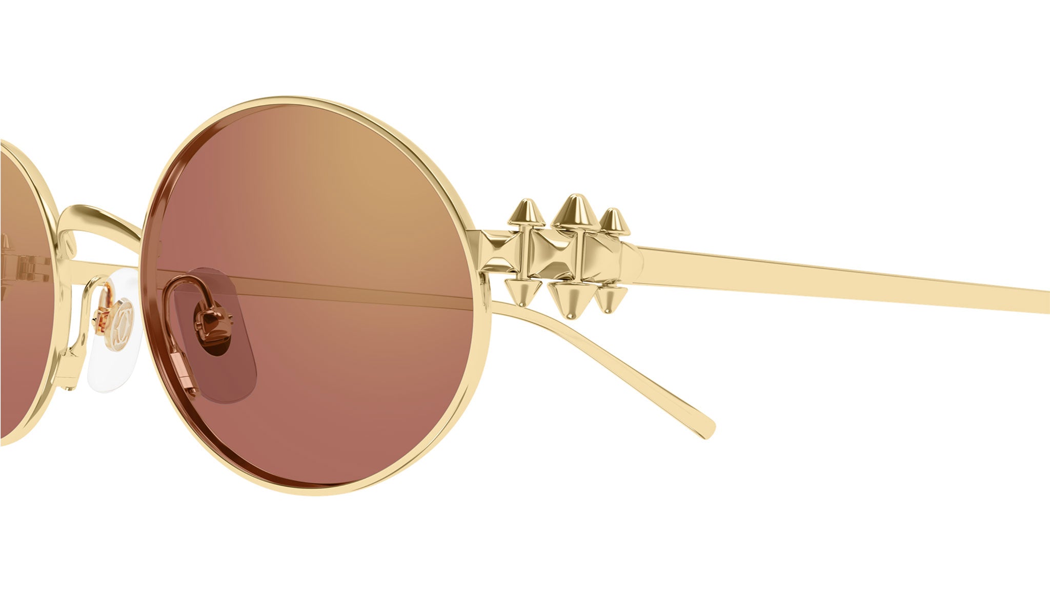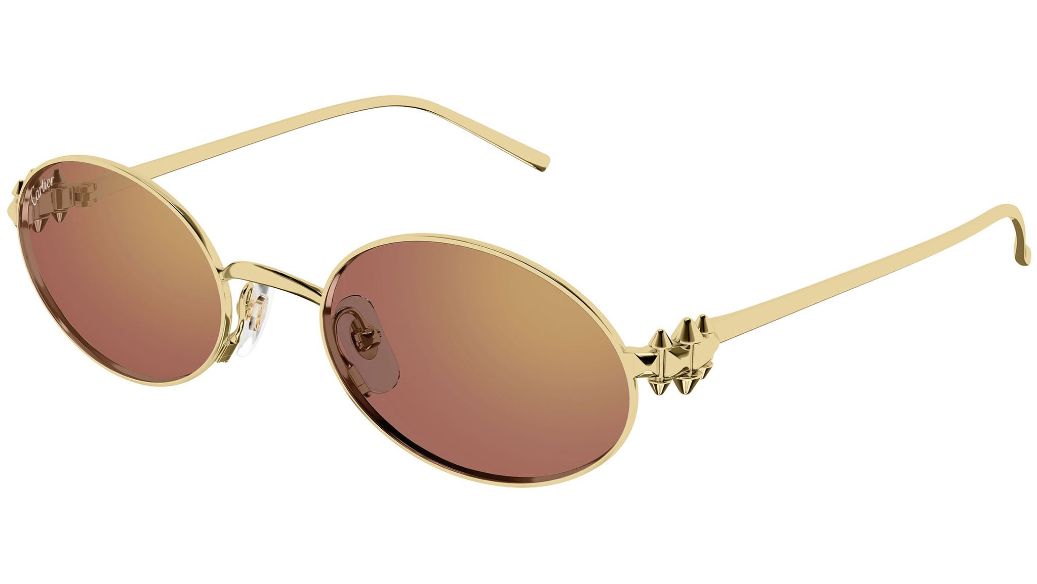 Occhiali da sole Cartier CT0644S 003 donna con montatura ovale in metallo color oro finitura smooth e lenti corallo / flash oro. Linea: Exception. Codice modello: CT0644S. Codice colore: 003. Made in France. Rivenditore autorizzato Cartier online. Gli occhiali vengono consegnati con custodia e accessori originali e sono coperti dalla garanzia ufficiale di 12 mesi del produttore.