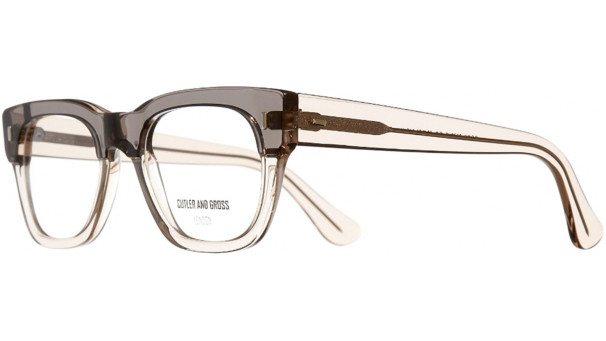 An iconic square optical frame featuring a heavy brow and tapered temple.