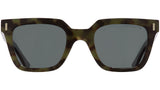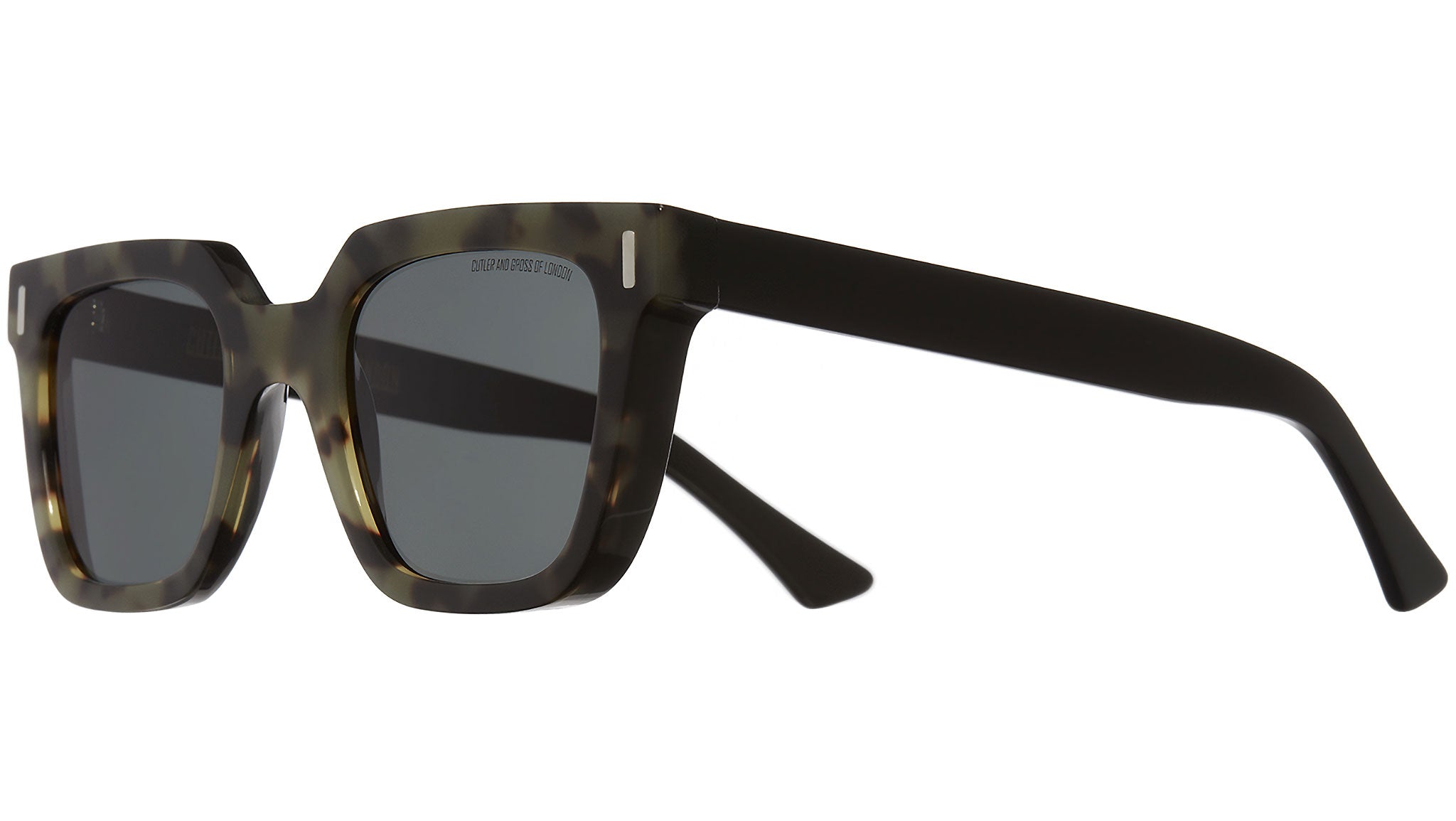 Large square designer pair of sunglasses with interior 'televisioni' milling from 9mm sheet acetate milled from behind for comfort. Flat bridge a new vertical frontal pin and pinless temples.