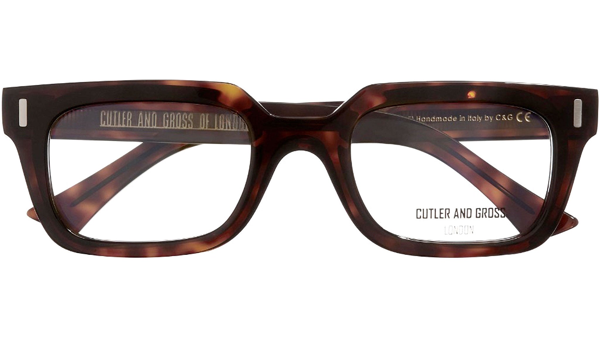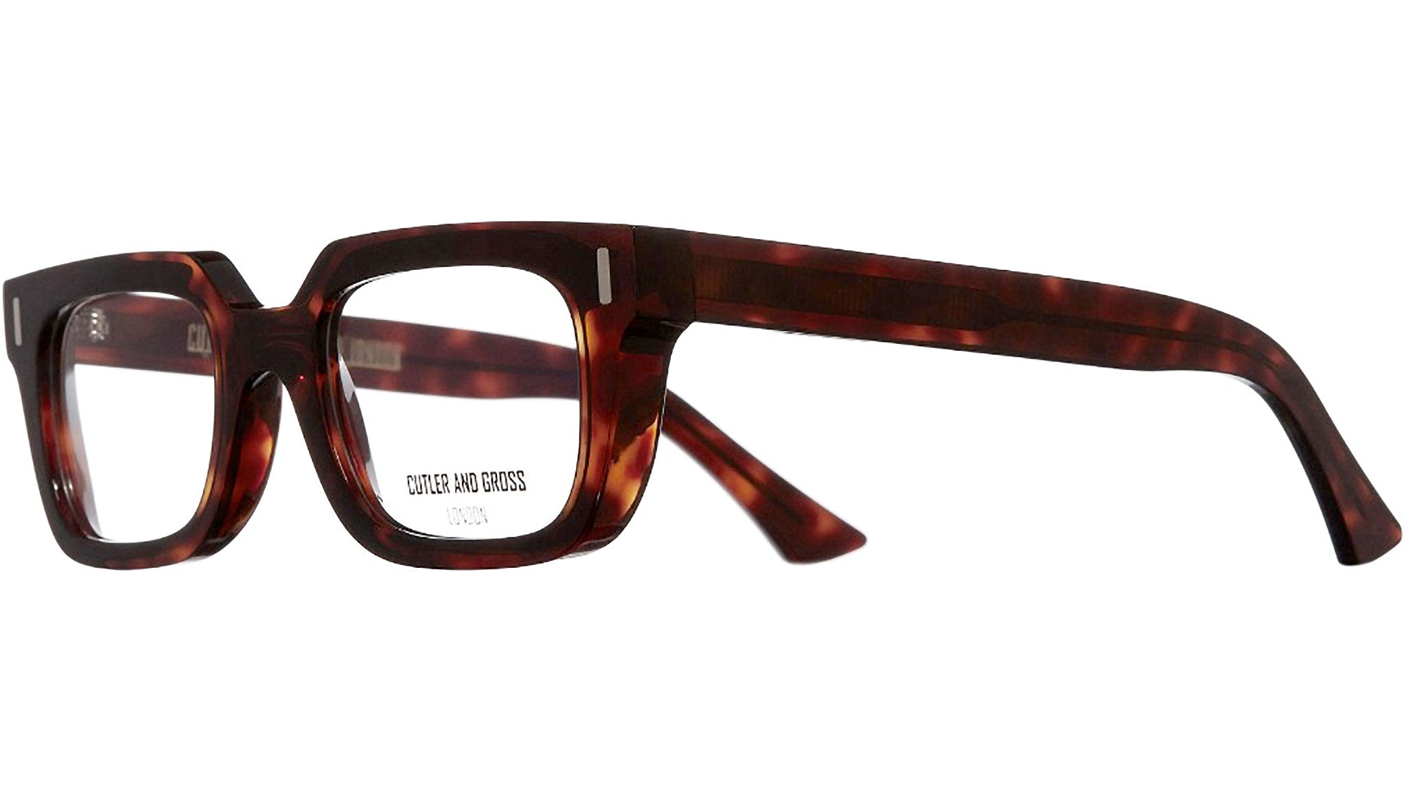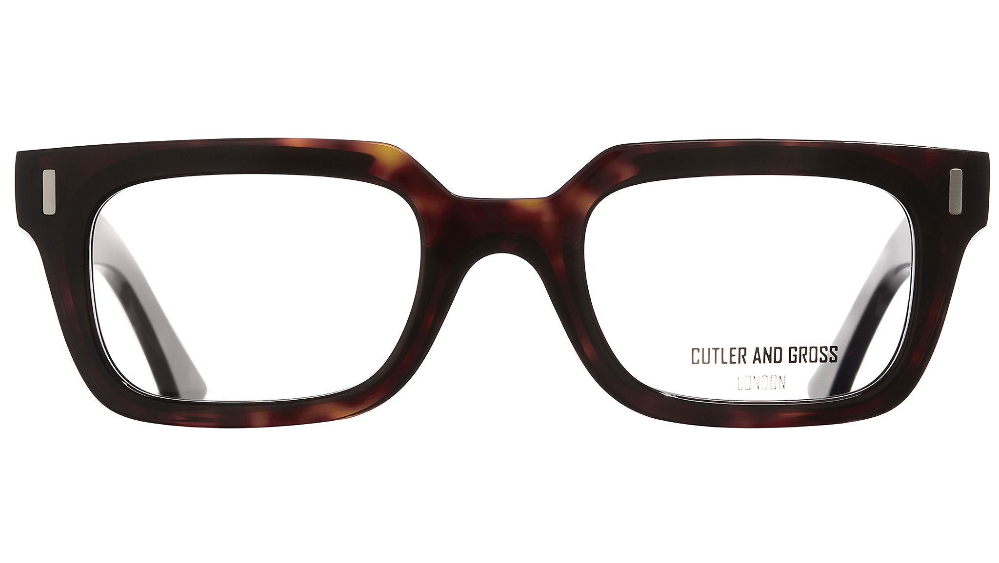 Rectangle design optical frame with interior 'televisioni' milling from 9mm sheet acetate milled from behind for comfort. Flat bridge a new vertical frontal pin and pinless temples.
