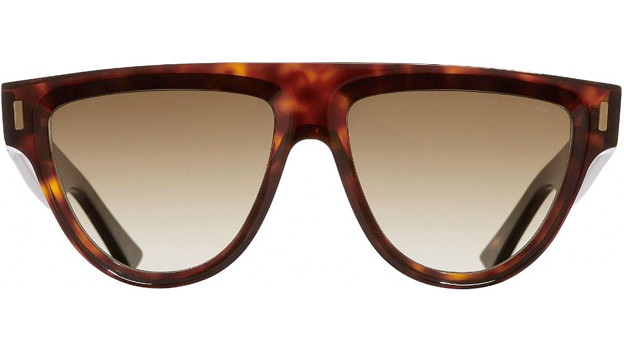 Inspired by visors and high fashion of the 80's and 90's this bold oversized unisex sunglass features 9mm reverse milled laminated acetate and a flat angular top.
