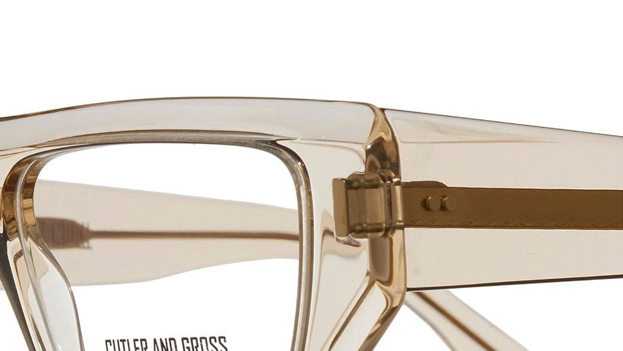 A new generation slice frame, with a striking regressive matte milled browline and wide temples. Polished acetate primary frontal with matte acetate base and temples. Vertical flush pins.