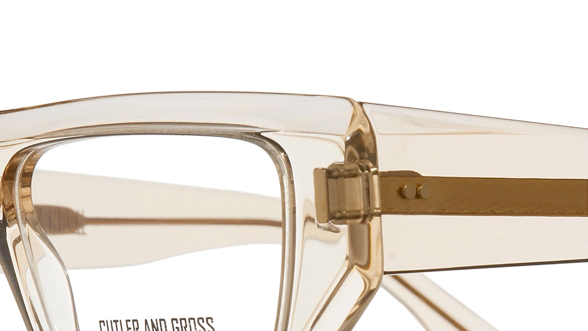 A new generation slice frame, with a striking regressive matte milled browline and wide temples. Polished acetate primary frontal with matte acetate base and temples. Vertical flush pins.