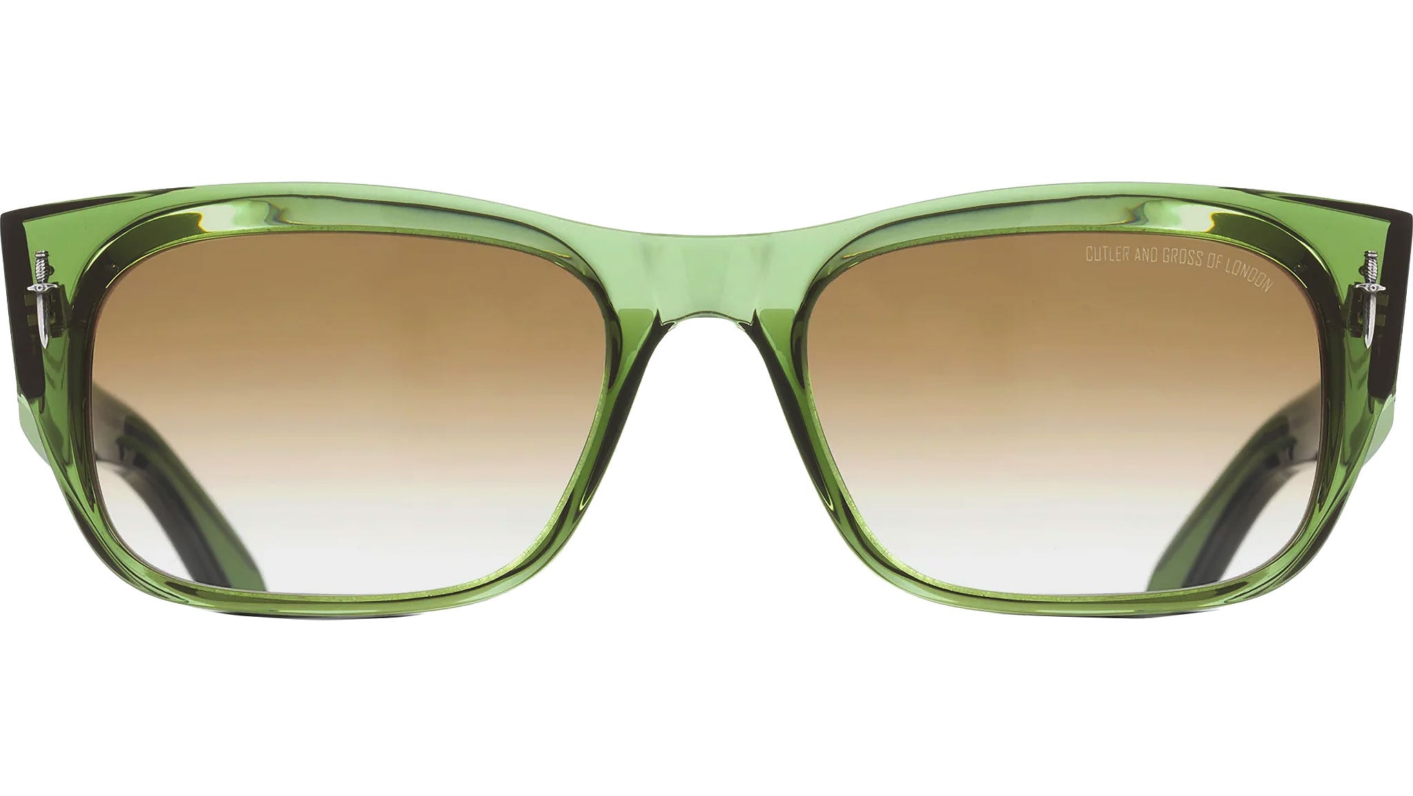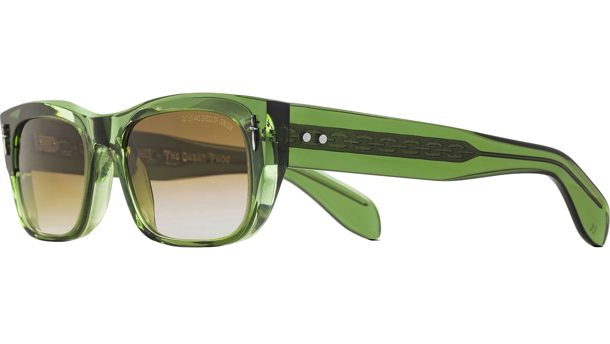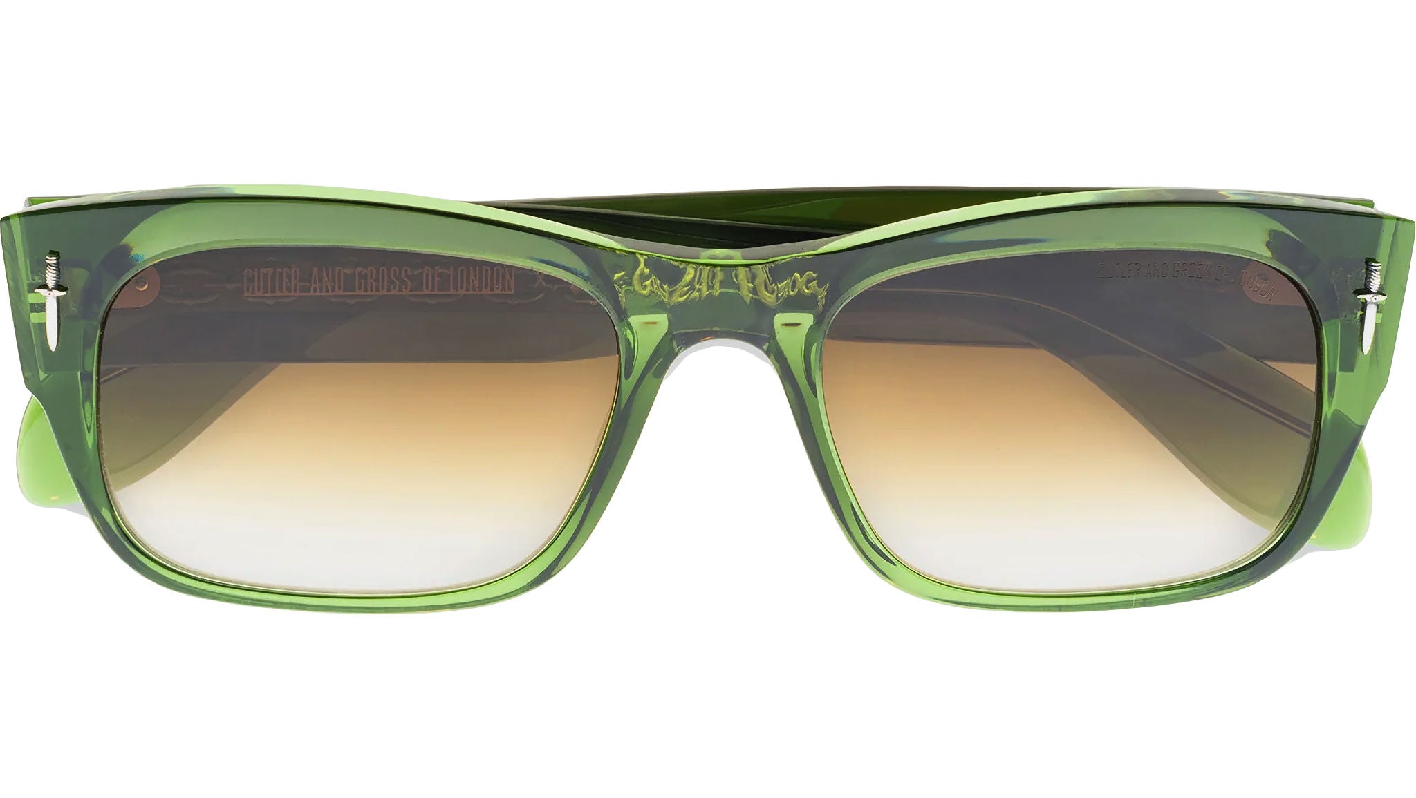 Occhiali da sole Cutler and Gross GFSN The Great Frog 002 colore 04 Green Crystal in acetato. Semplice, ma ricco di dettagli, con fregi frontali a forma di pugnale in argento Sterling 925 britannico, questo occhiale per tutti i giorni è impregnato dello spirito rock 'n' roll di The Great Frog.