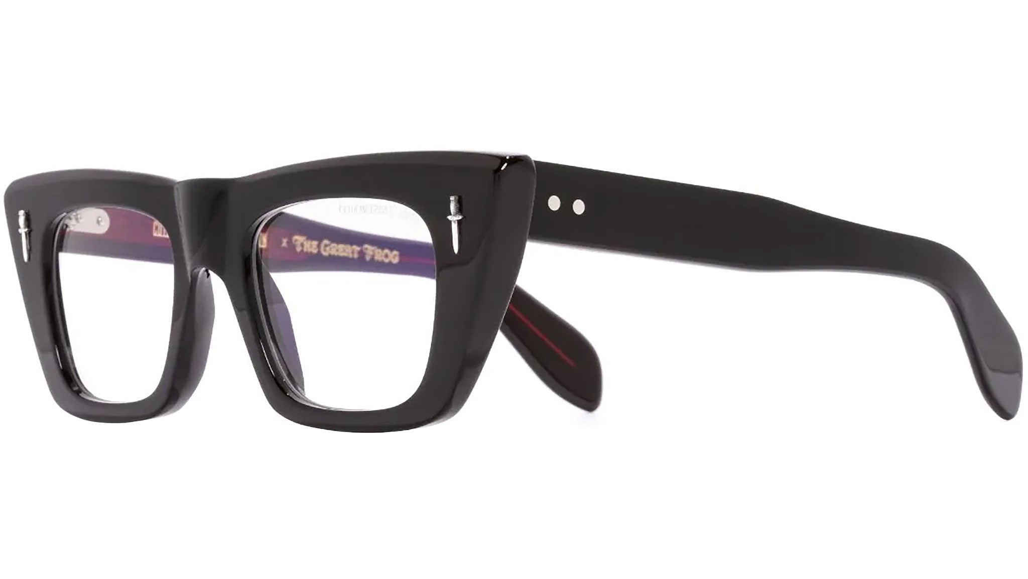 La collaborazione Cutler and Gross X The Great Frog, questi cat-eye sono stati volutamente rivisitati. Fusi a mano in argento sterling, i perni frontali Dagger accentuano la montatura in stile anni '80, mentre il filo centrale della catena Lock Down struttura le aste. La montatura è sagomata con la parte superiore piatta e chiude elegantemente con delle punte Plectrum.