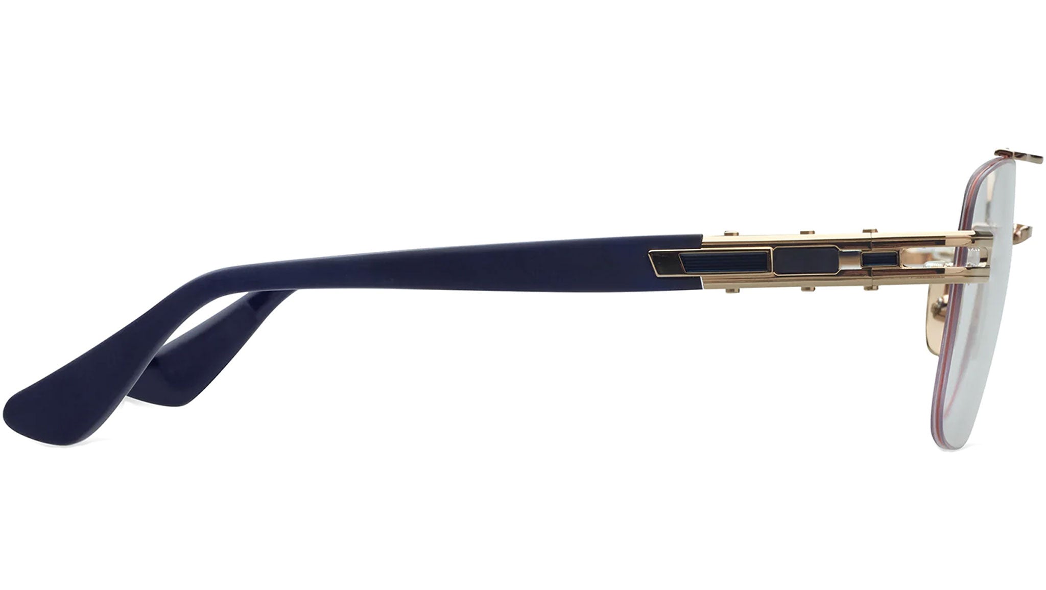 - Custom temple hinge plate with enamel inlay detail