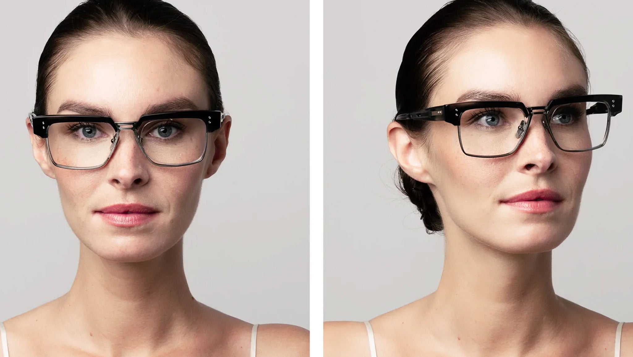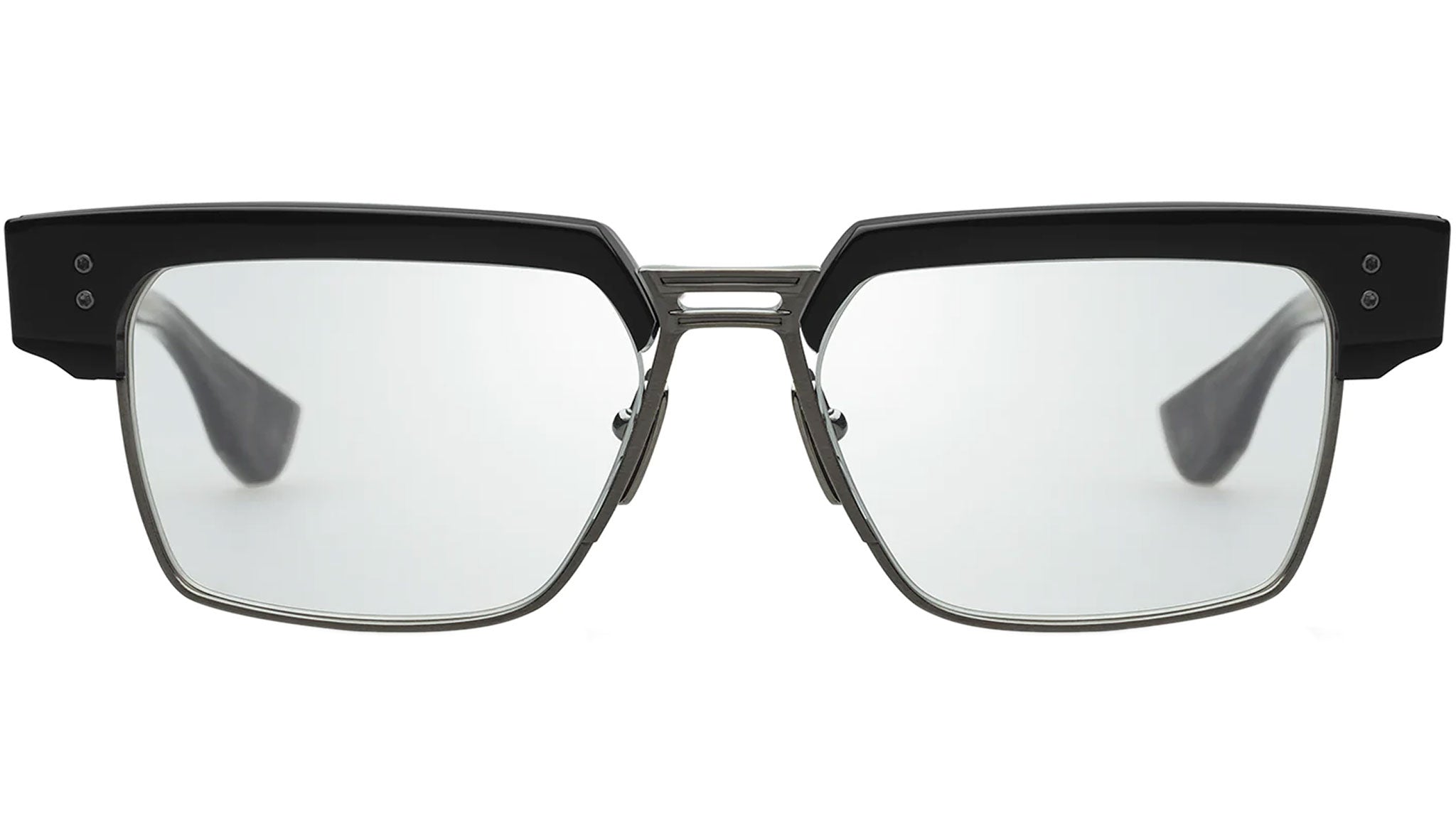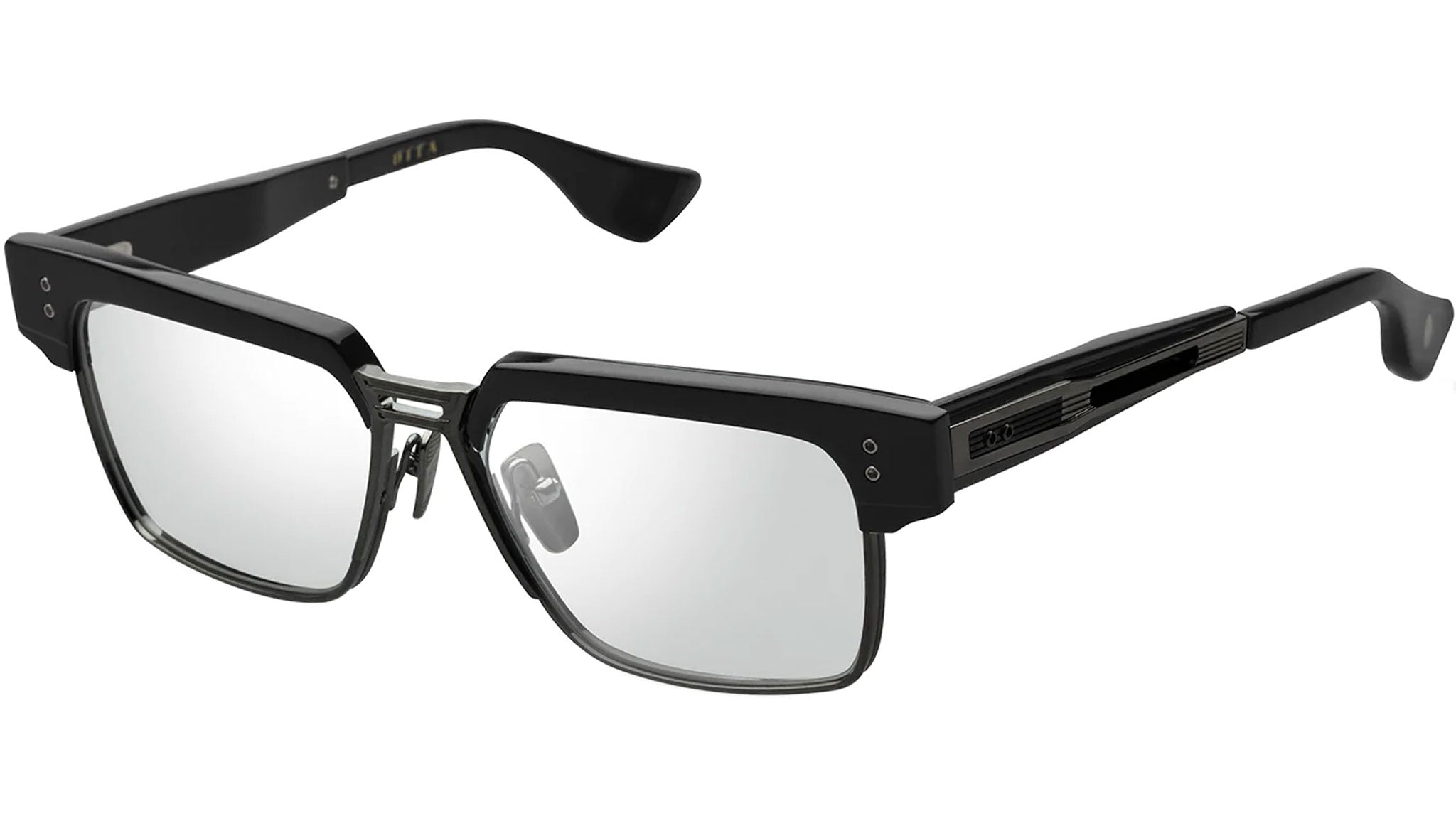 - Dual titanium temple plate with pressed line detail and contrast finish