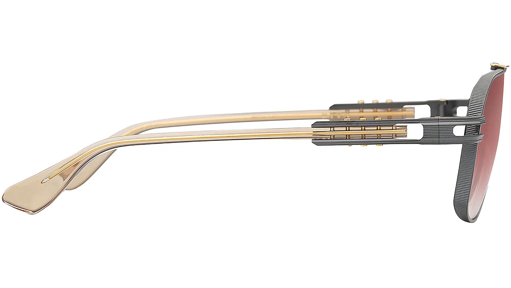 DITA Kudru esemplifica l'arte del design degli occhiali da sole, con la sua montatura in titanio stile navigator, che incarna una spiccata estetica maschile. Il design delle aste evidenzia l'impegno di DITA verso l'innovazione e la competenza ingegneristica, con un sistema di regolazione a tre punti, per una personalizzazione che assicura comfort ottimale e vestibilità. La meticolosa artigianalità di Kudru è evidente nelle linee pressate sul bordo delle lenti e nella costruzione in due pezzi di titanio per sopracciglio e ponte. La montatura artigianale è accompagnata da una scatola Dita con chiusura magnetica, un panno in microfibra per la pulizia delle lenti, una custodia morbida in microfibra e un libretto di garanzia, riflettendo la dedizione del marchio alla qualità e allo stile.