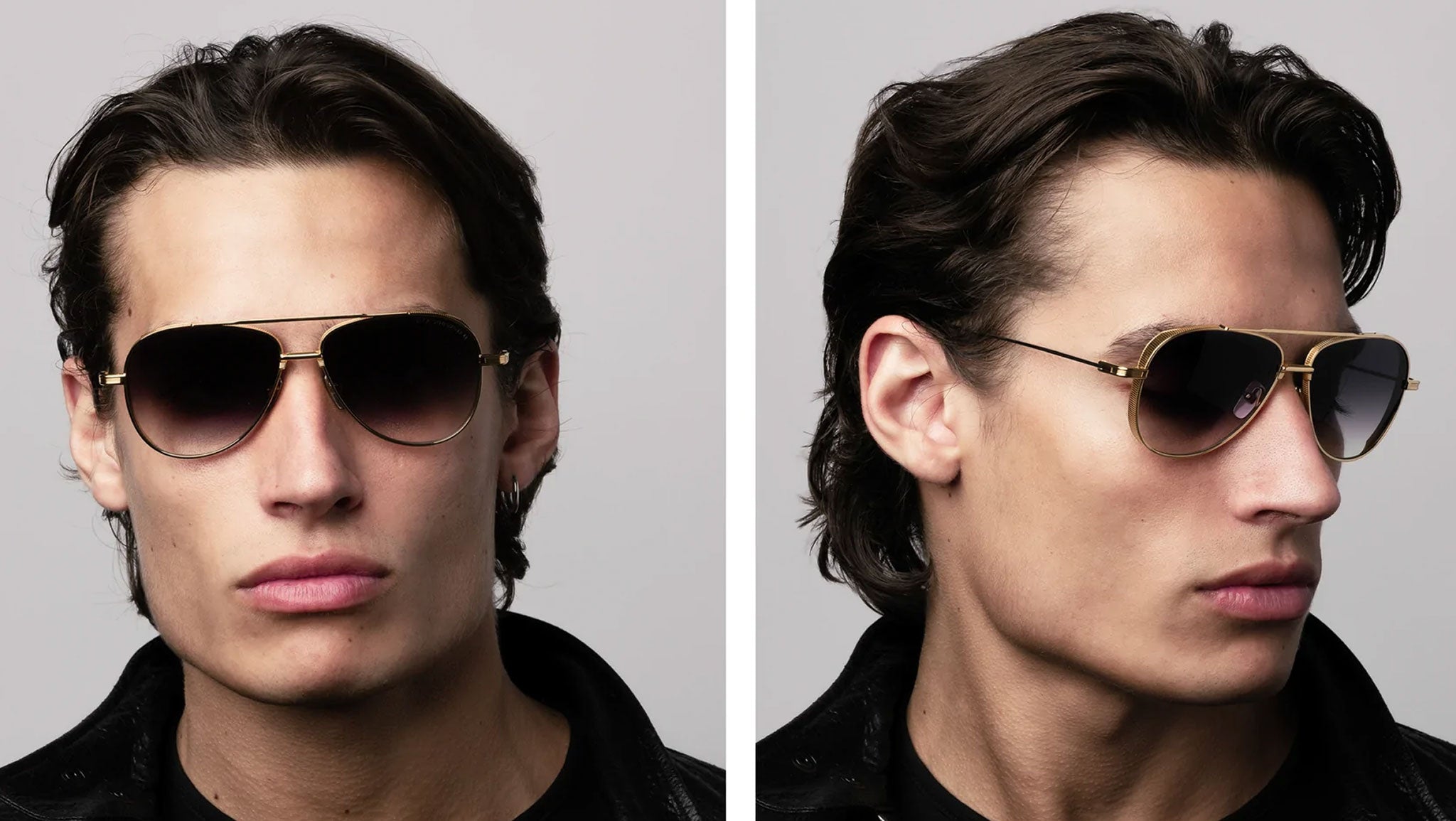 Dita’s designers set out with the goal of making one of the most ornate and highly detailed all-titanium aviators in the history of the brand, resulting in Subsystem. Subsystem boasts jaw-dropping details throughout: dual-tone titanium construction with intricate pressed lines, an angular brow bar and stepped bridge, and an aggressively flared titanium lens rim with pressed lines continuing through its temples and end pieces. High quality titanium frame and temples. Pressed line detail on lens rim, temple end piece and temple. Titanium nose pads. Thin titanium with elegantly sculpted temple tips. 100% UVA and UVB lens with anti-reflective coating. Made in Japan.