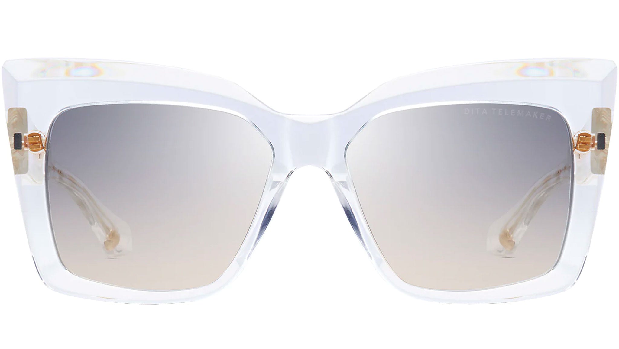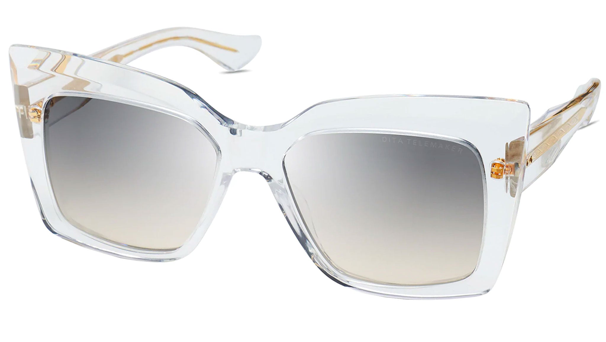 A custom, wire-core temple design is fitted with DITA’s iconic hex screw hinges for extra durability. Combining the broad profile of a squareframe with the pointed attitude of a cat-eye, Telemaker cuts its own path in the spirit of DITA’s most celebrated character frames.