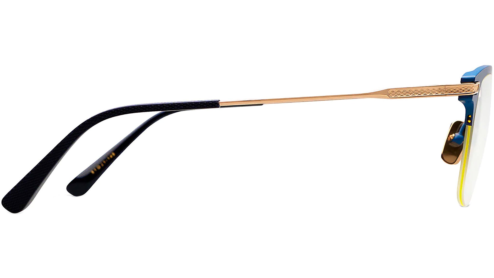 Basandosi sul successo dello stile Union, con Union-Two Dita trasforma la montatura attraverso un approccio semi-rimless. Il cambiamento trova una maggiore semplicità, con linee più pulite, offrendo una riduzione visiva e fisica del peso, ottimale per chi porta gli occhiali. Questa montatura elegante e sofisticata ha una barra frontale in titanio con ponte e rivetti dettagliati in diamanti e naselli in titanio personalizzati.
