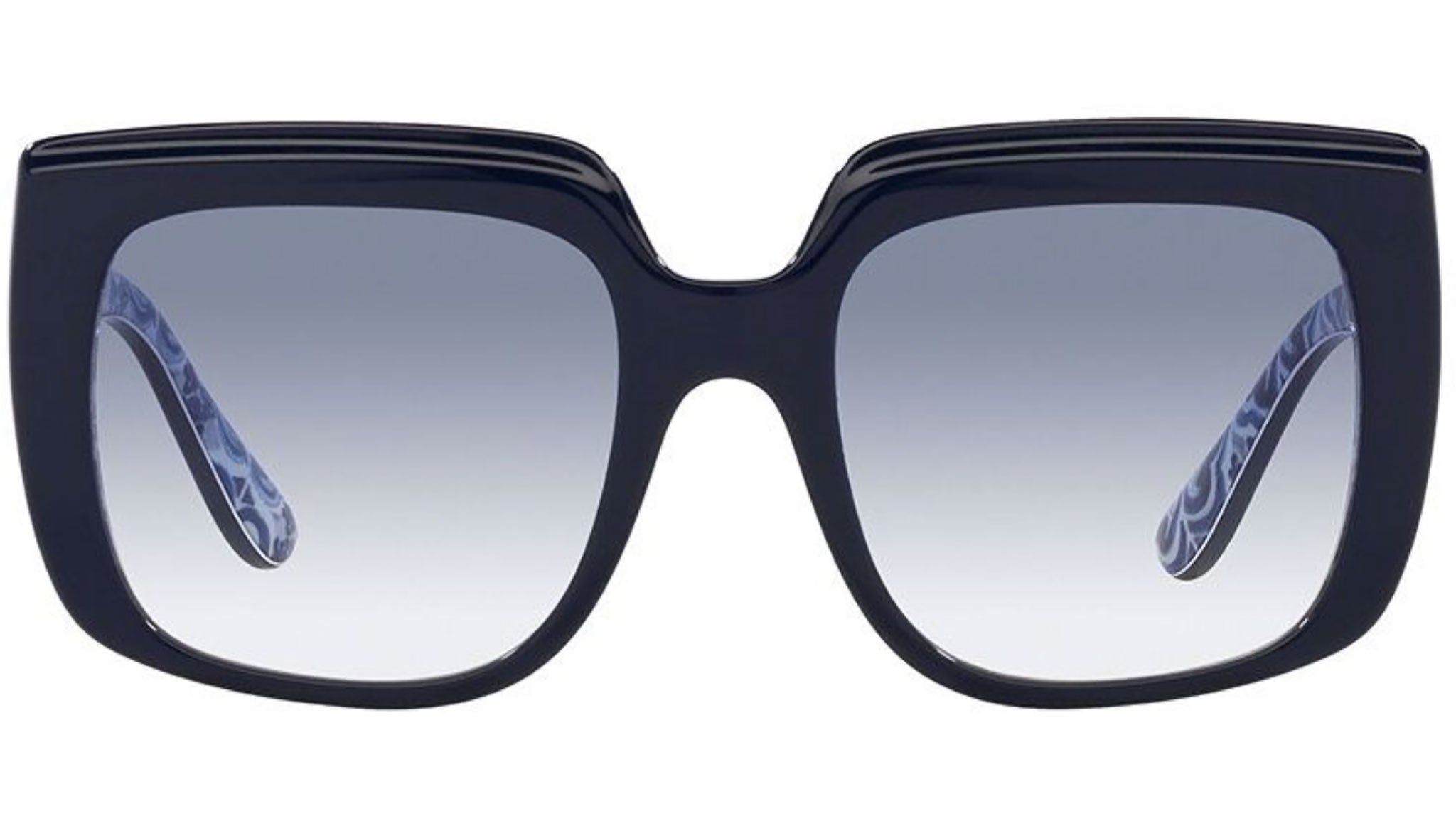 Occhiali da sole Dolce&Gabbana modello DG 4414 linea Dna codice colore 341419 blu su blu maiolica in acetato forma square con lenti color trasparente sfumato azzurro chiaro.