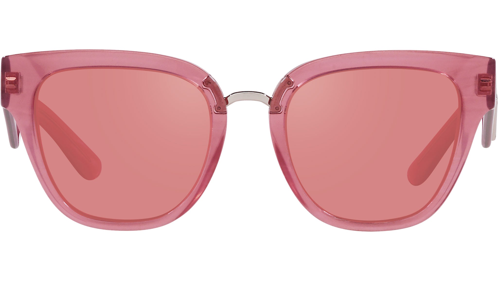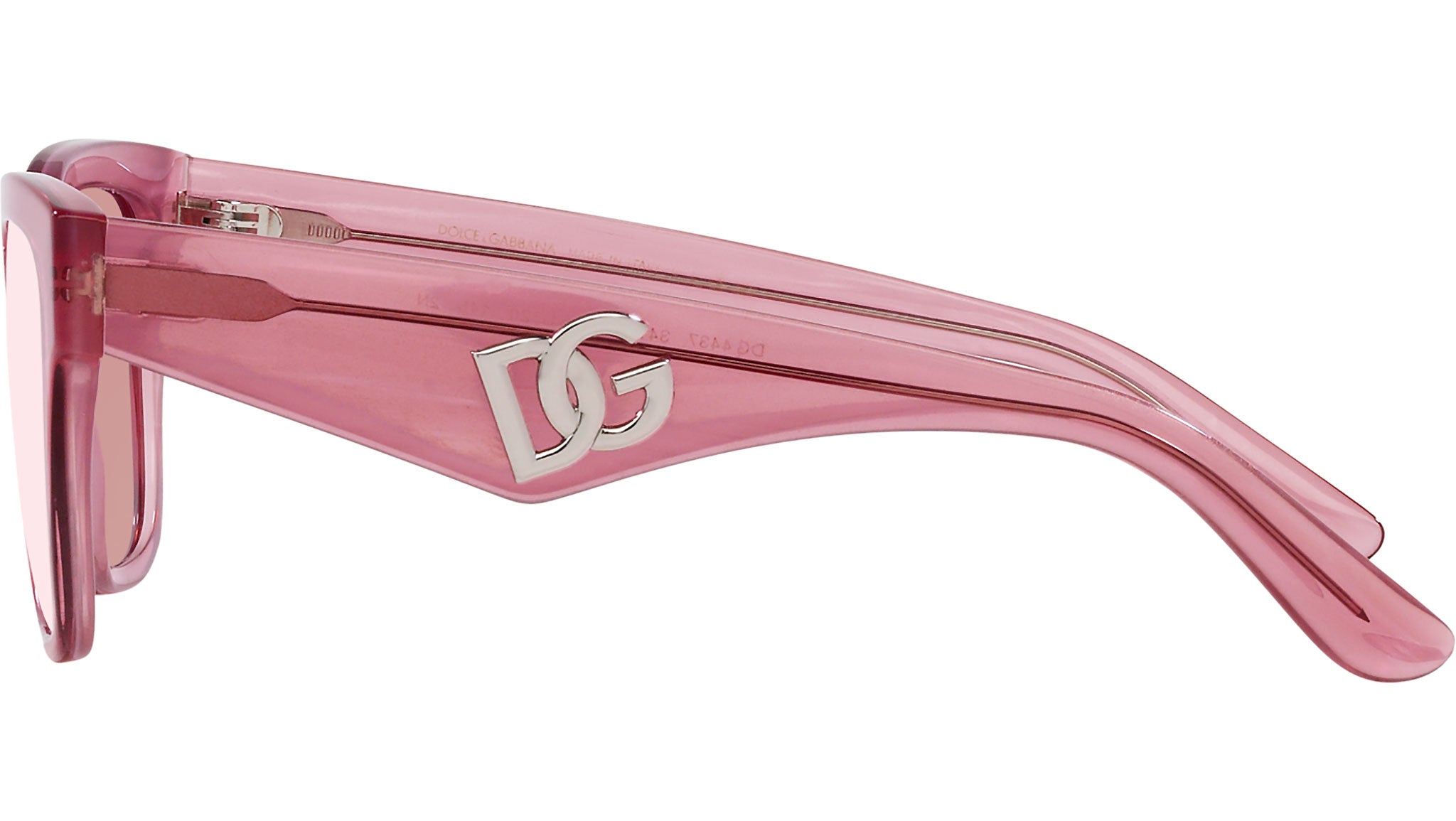 Occhiali da sole Dolce&Gabbana modello DG 4437 linea Dna codice colore 3405A4 rosa fleur in acetato forma butterfly con lenti color rosa scuro a specchio rosso.