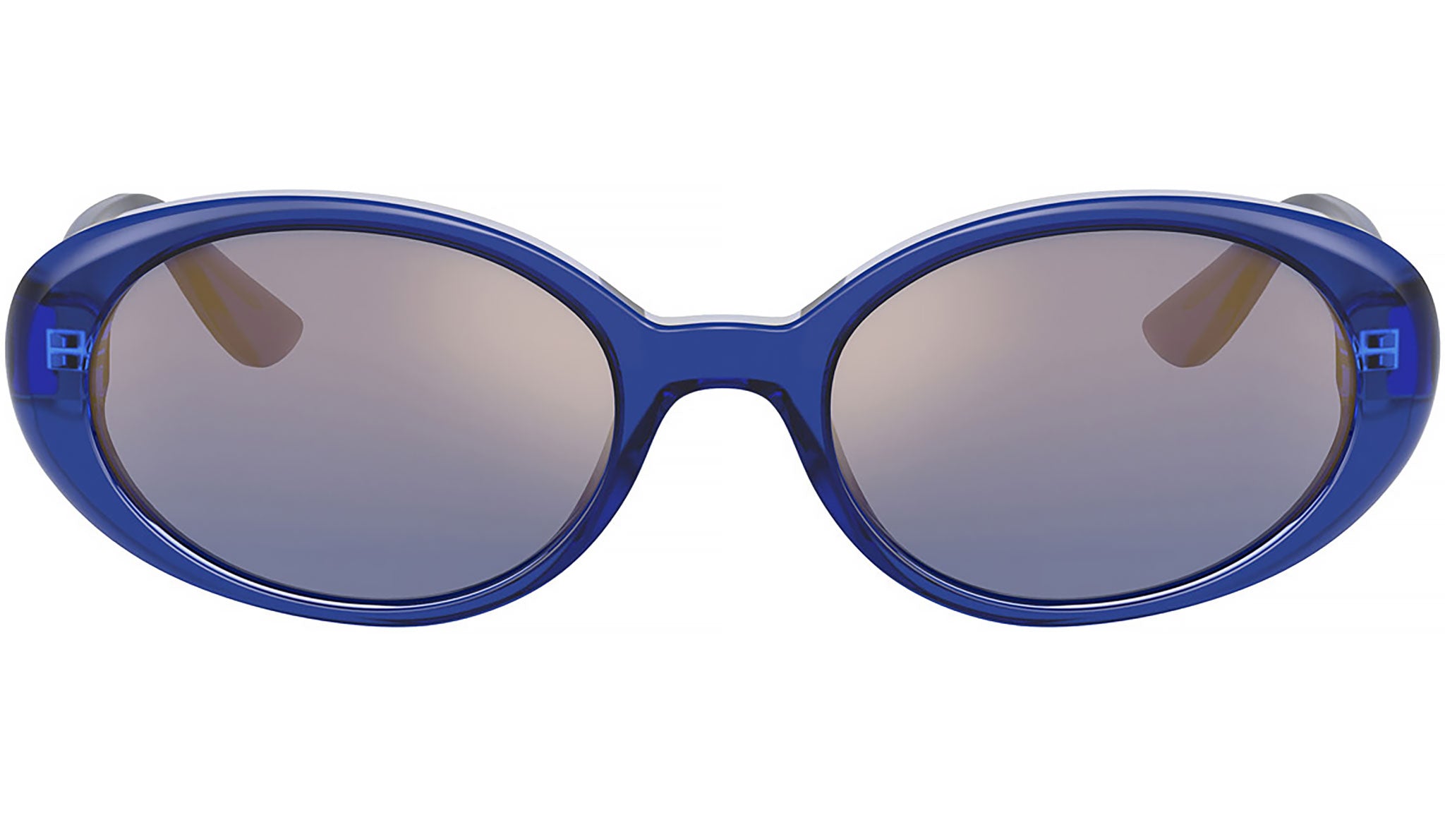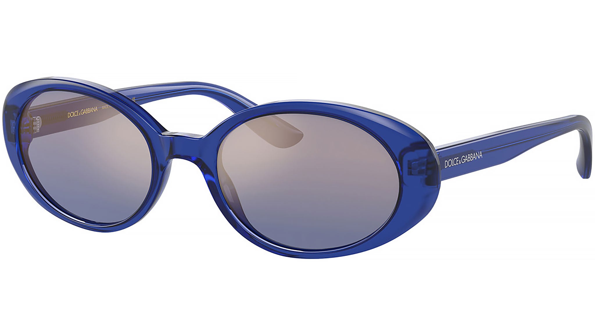 Occhiali da sole Dolce&Gabbana modello DG 4443 linea Dna codice colore 339833 blu lattiginoso in acetato forma oval con lenti color blu a specchio sfumato oro.