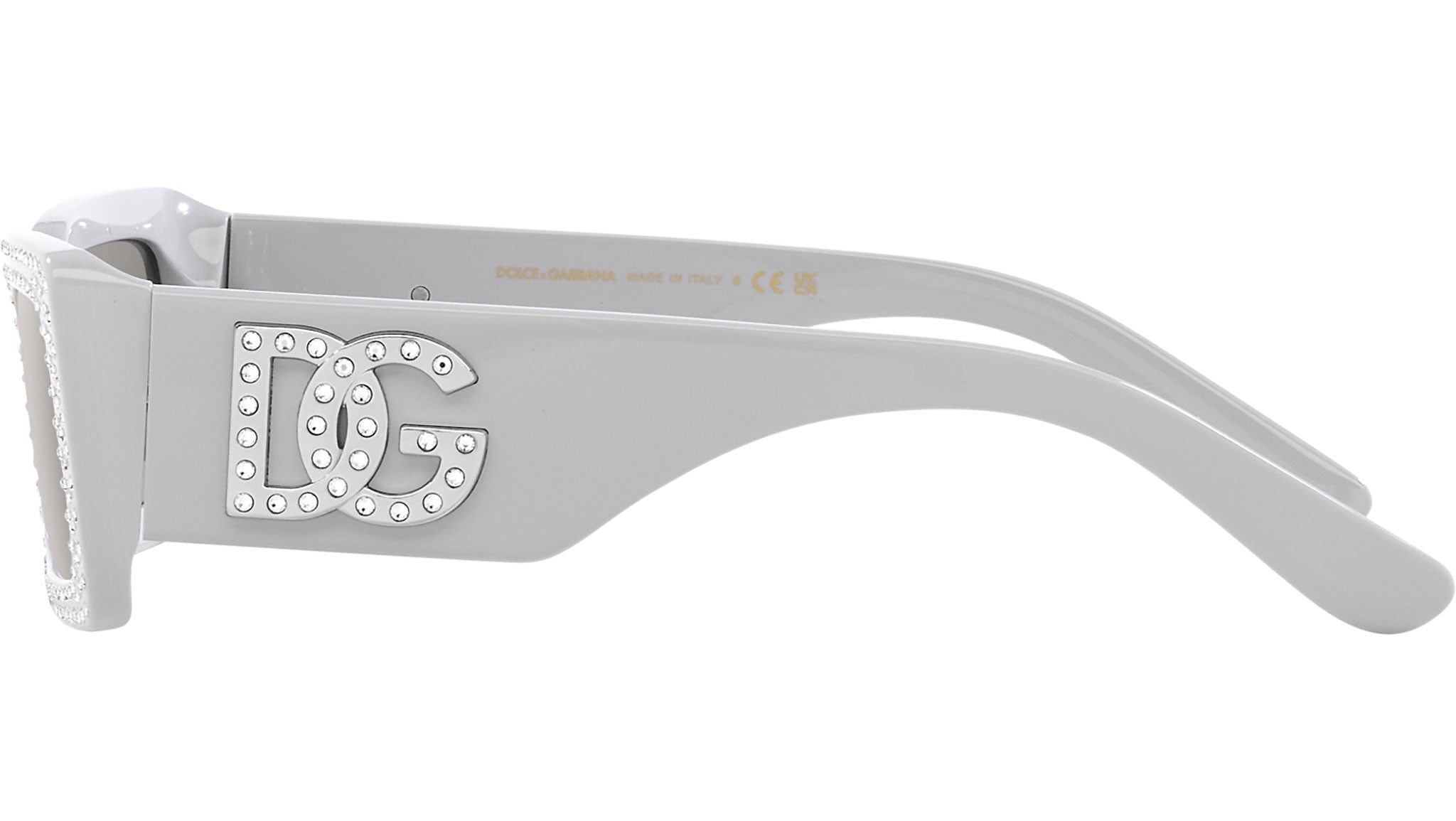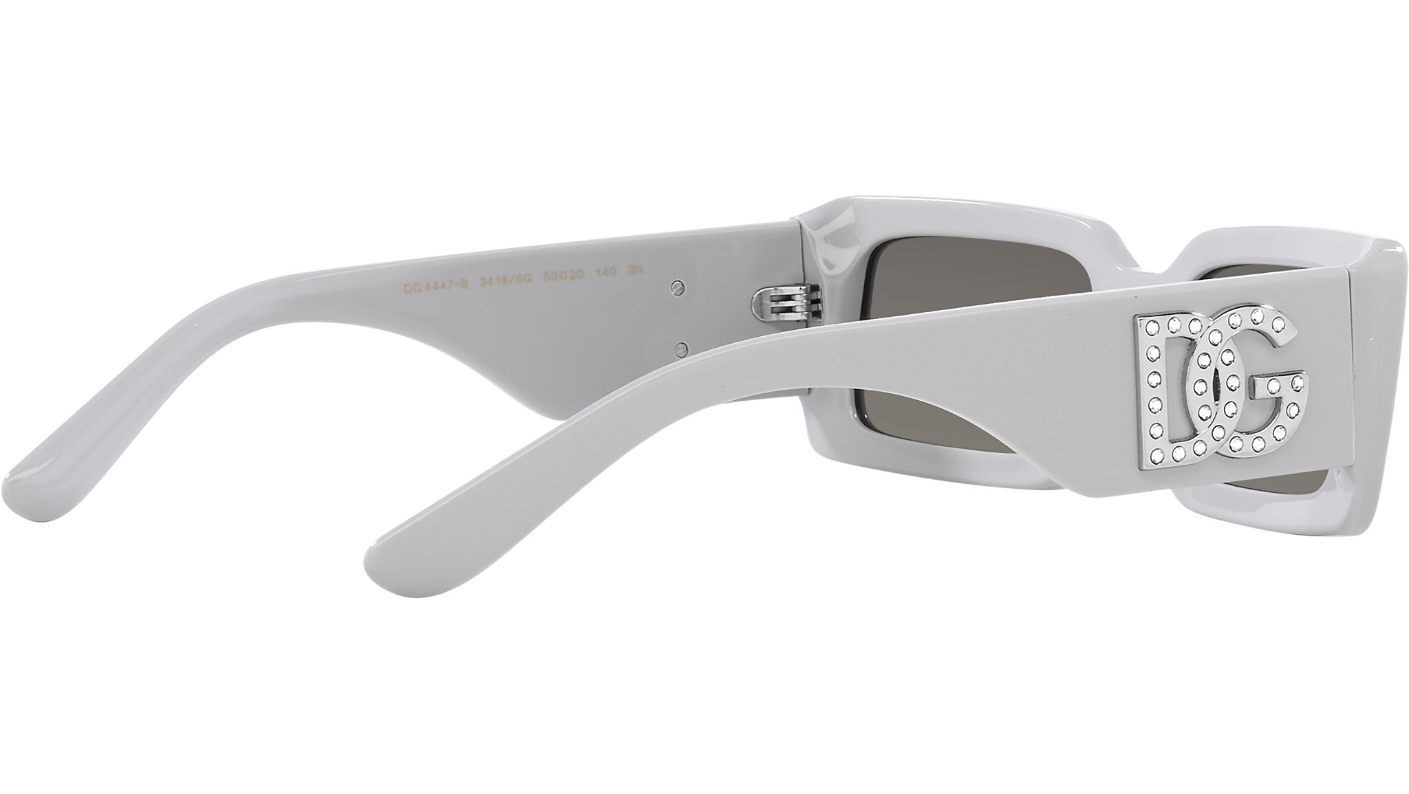 Occhiali da sole Dolce&Gabbana modello DG 4447B linea Statement codice colore 34186G grigio chiaro in acetato forma rectangle con lenti color grigio chiaro a specchio argento.