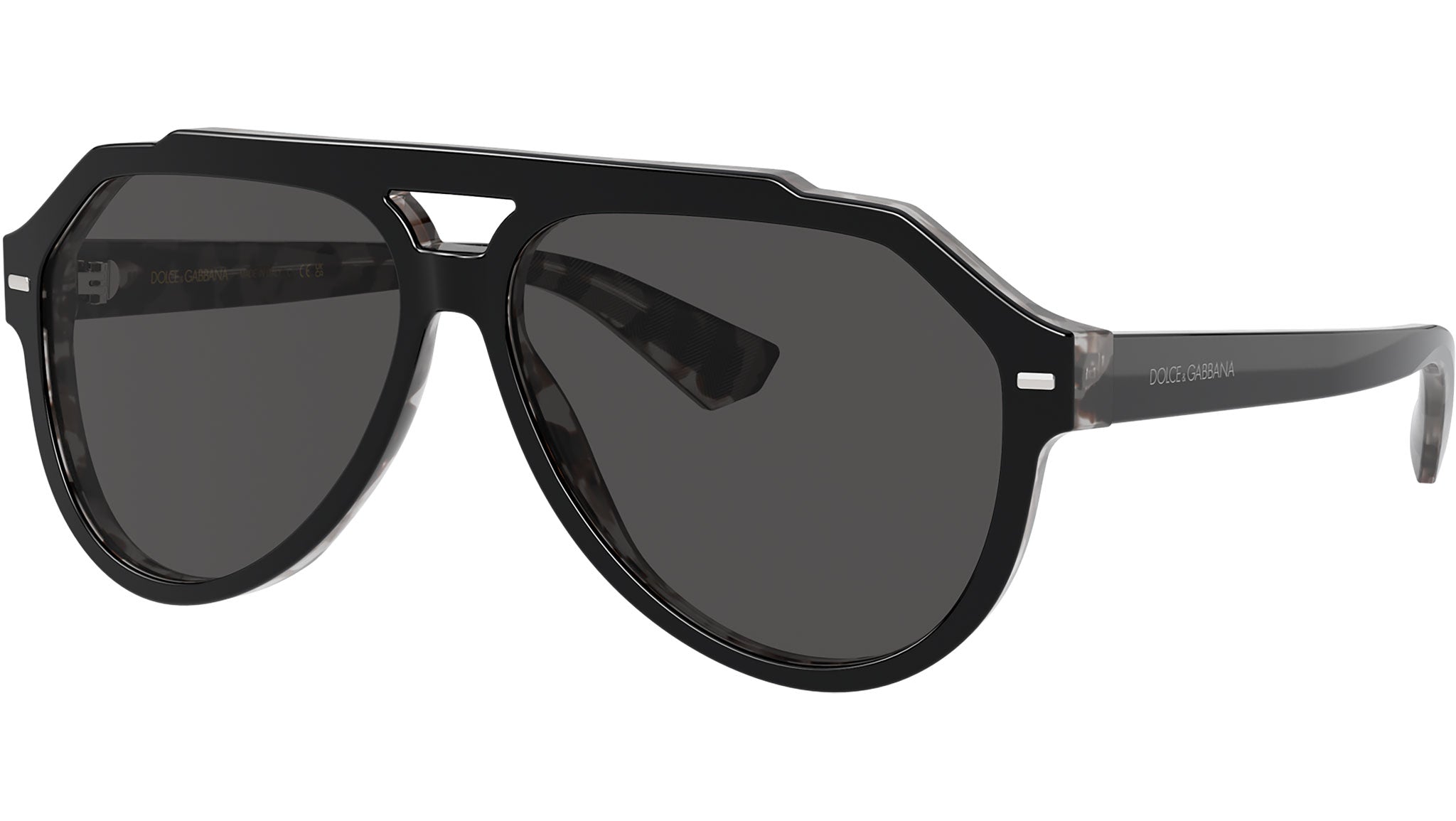 Occhiali da sole Dolce&Gabbana modello DG 4452 linea Dna codice colore 340387 nero su avana grigio in acetato forma aviator con lenti color grigio scuro.