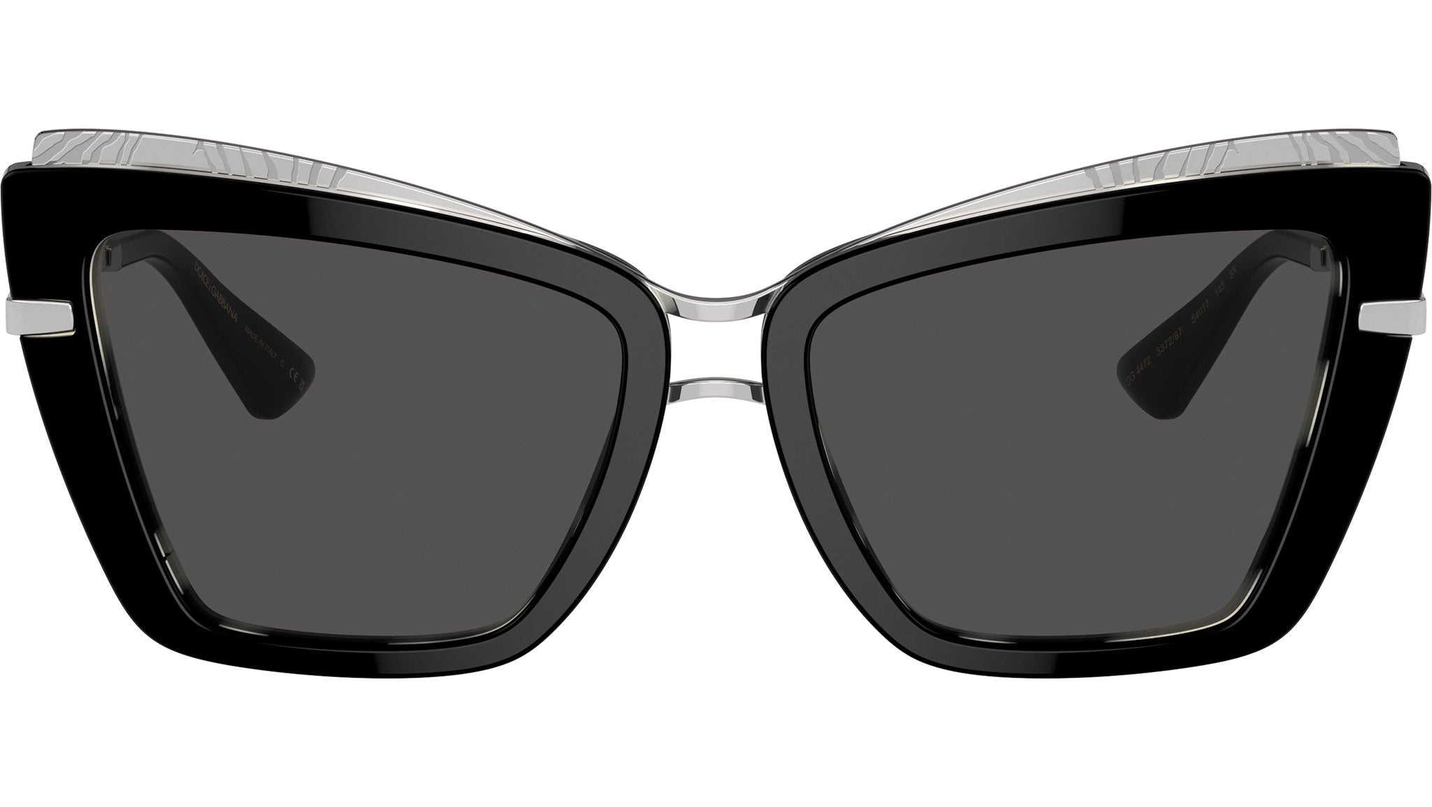 Occhiali da sole Dolce & Gabbana donna, modello 4472 con montatura nero su zebra full rim in acetato e lenti base 4 in nylon grigio scuro. Vestibilità a ponte alto. Linea: Dna. Codice modello: DG4472. Codice colore: 337287. Taglia: XL adatta a un viso largo. Rivenditore online autorizzato Dolce & Gabbana. Gli occhiali vengono forniti con la custodia e gli accessori originali e sono coperti da una garanzia globale di 12 mesi.
