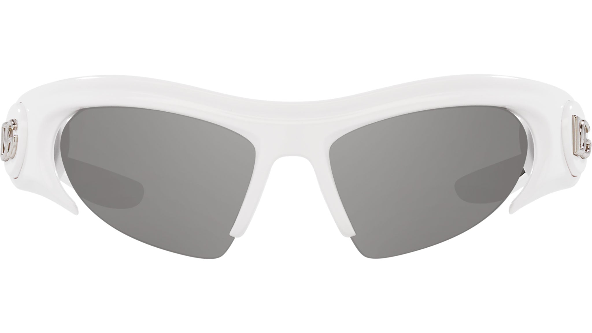 Occhiali da sole Dolce&Gabbana modello DG 6192 linea Active codice colore 33126G bianco in injection forma cat eye con lenti color grigio chiaro a specchio argento.