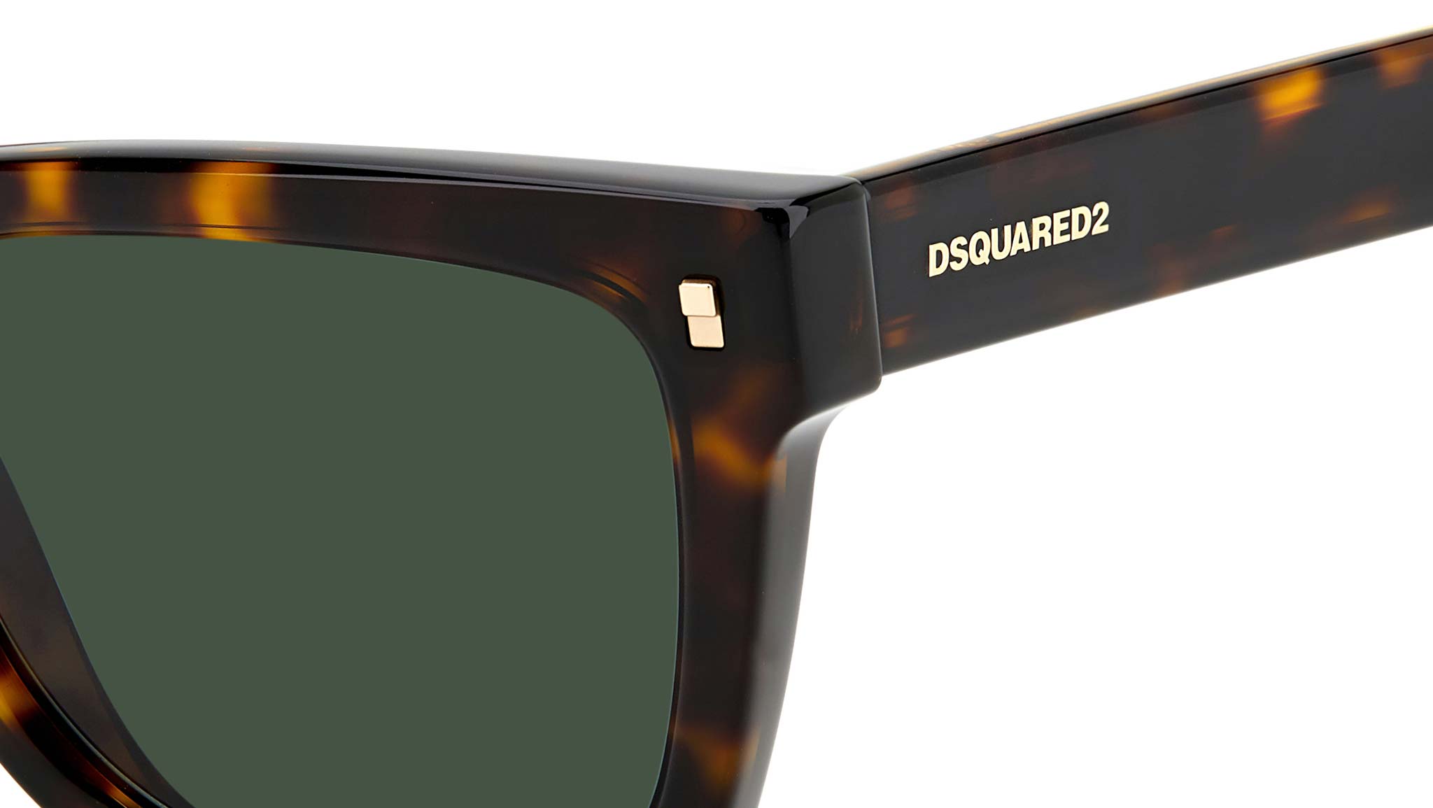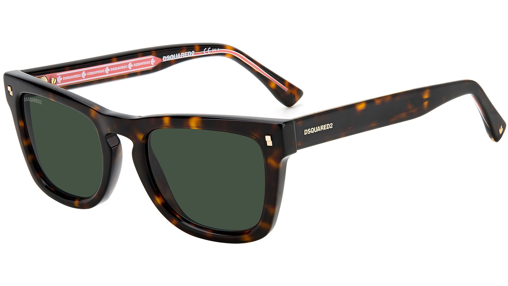 Sono occhiali da sole dall’anima vintage, ma senza tempo: la montatura dalle particolari sagome è firmata dal logo DSQUARED2 in rosso e bianco sull’anima metallica delle aste, ispirato alle caratteristiche etichette dell’abbigliamento. Gli iconici rivetti in metallo sul frontale acetato e la foglia d’acero nei terminali sono l’emblema di questi occhiali da uomo, creati nello stile inimitabile e inconfondibile DSQUARED2.