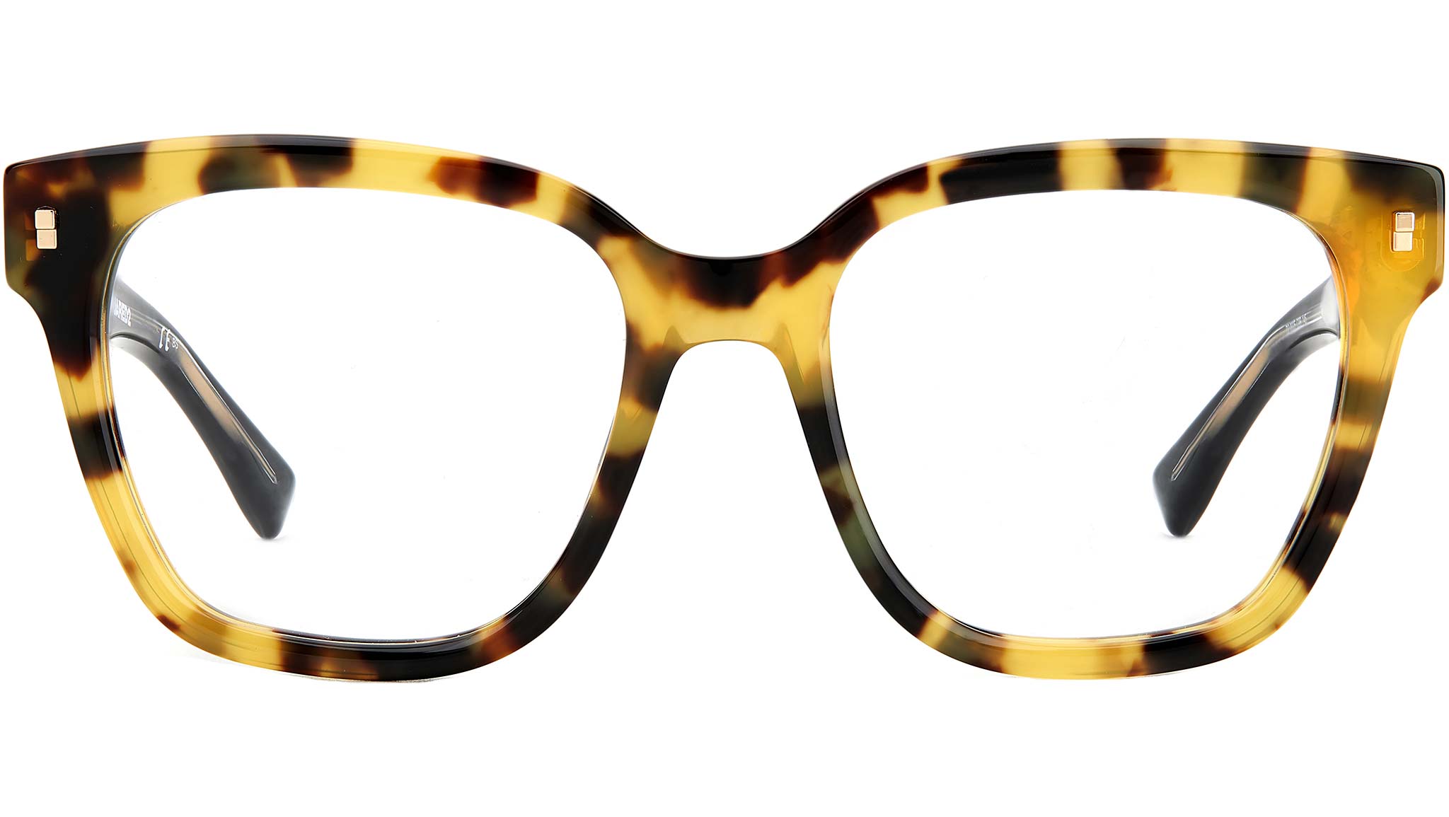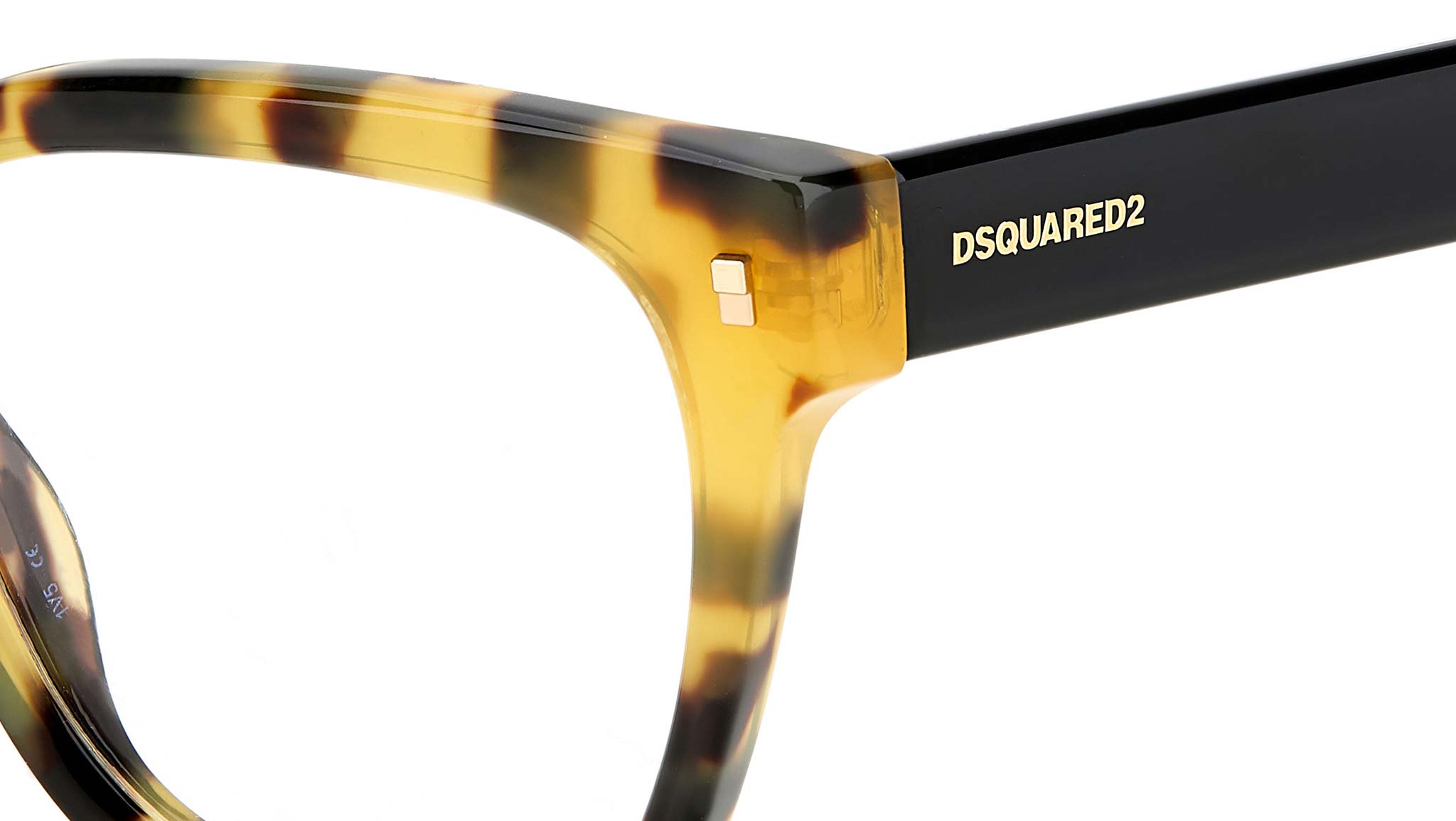 Sono occhiali da vista dall’anima vintage, ma senza tempo: la montatura dalle particolari sagome è firmata dal logo DSQUARED2 in galvanico sull’anima metallica delle aste, ispirato alle caratteristiche etichette dell’abbigliamento. Gli iconici rivetti in metallo sul frontale acetato e la foglia d’acero nei terminali sono l’emblema di questi occhiali da donna, creati nello stile inimitabile e inconfondibile DSQUARED2.