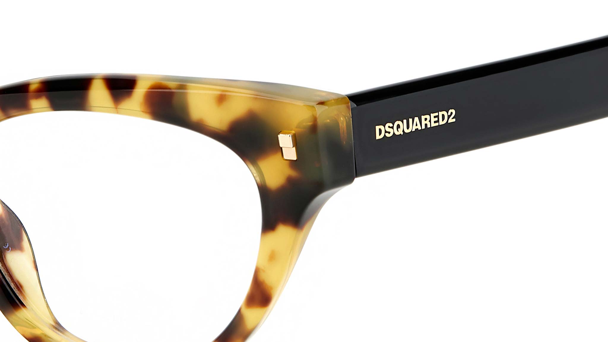 Sono occhiali da vista dall’anima vintage, ma senza tempo: la montatura dalle particolari sagome è firmata dal logo DSQUARED2 in galvanico sull’anima metallica delle aste, ispirato alle caratteristiche etichette dell’abbigliamento. Gli iconici rivetti in metallo sul frontale acetato e la foglia d’acero nei terminali sono l’emblema di questi occhiali da donna, creati nello stile inimitabile e inconfondibile DSQUARED2.