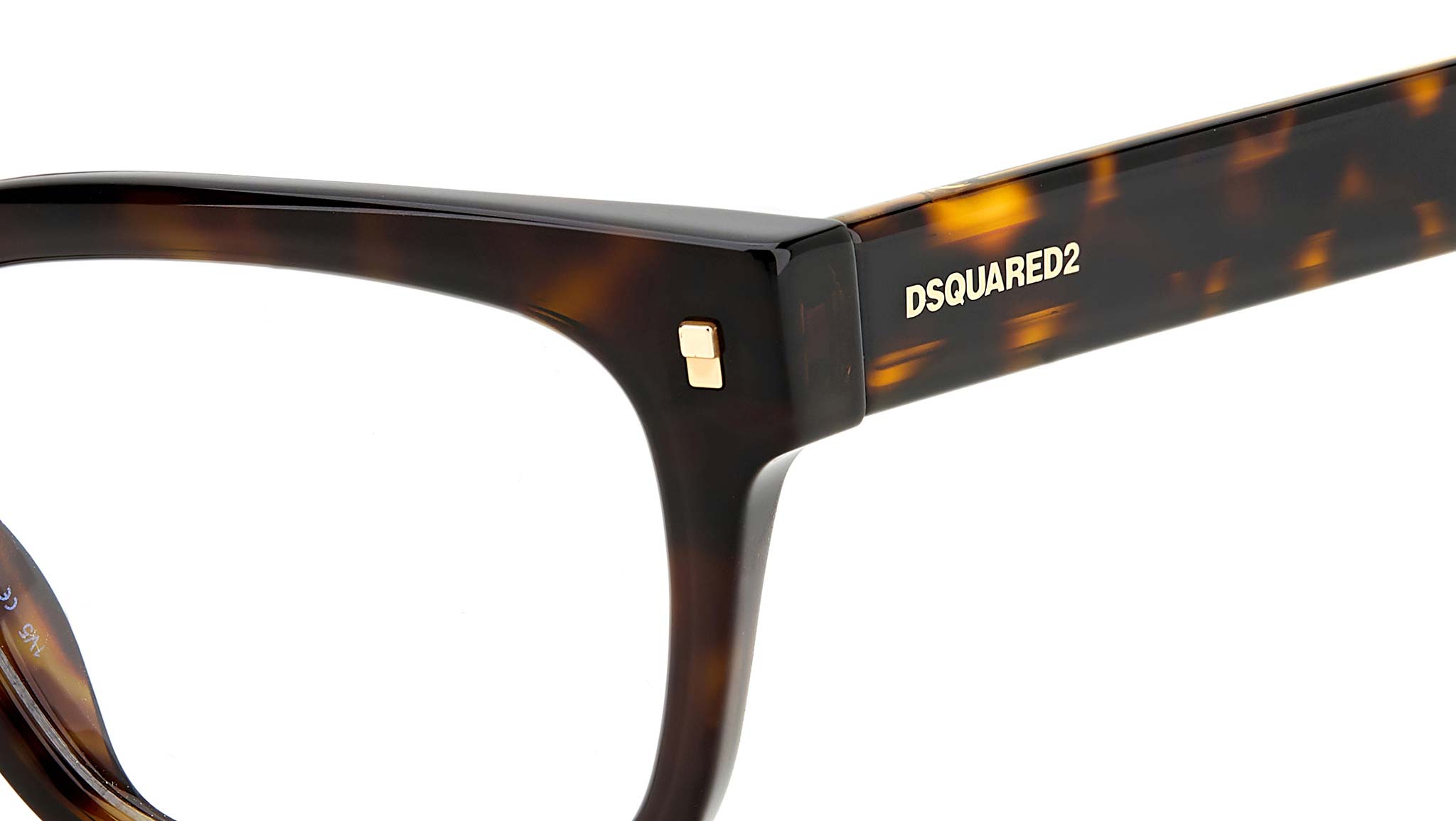 Sono occhiali da vista dall’anima vintage, ma senza tempo: la montatura dalle particolari sagome è firmata dal logo DSQUARED2 in galvanico sull’anima metallica delle aste, ispirato alle caratteristiche etichette dell’abbigliamento. Gli iconici rivetti in metallo sul frontale acetato e la foglia d’acero nei terminali sono l’emblema di questi occhiali da donna, creati nello stile inimitabile e inconfondibile DSQUARED2.