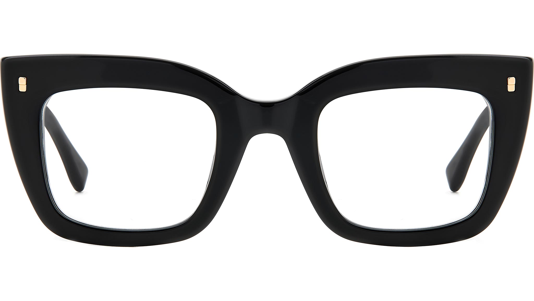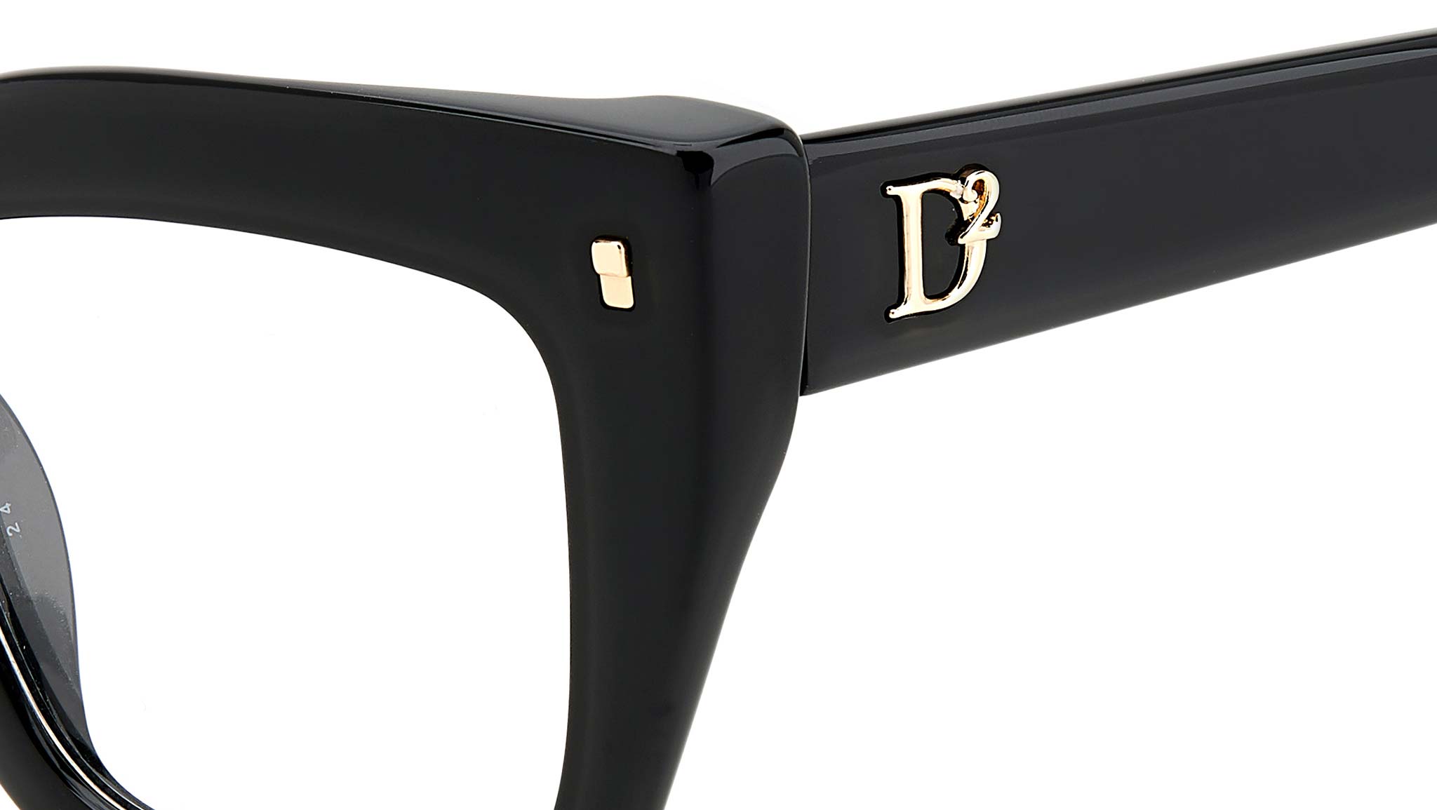 Occhiali da vista Dsquared2 modello D2 0099 codice colore 807 nero con lenti demo Ad attrarre subito l’attenzione in questi occhiali da vista in acetato DSQUARED2 è il frontale bold vintage e gli originali rivetti in metallo sull’angolo esterno. Il design sofisticato di questo occhiale femminile è firmato dal logo D2 in alto rilievo sulle aste, ispirato dagli accessori donna, e dai terminali impreziositi dalla foglia d’acero, simbolo del brand. Rivenditore autorizzato online Dsquared2.