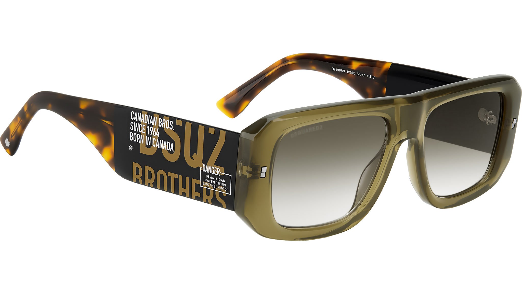 Occhiali da sole Dsquared2 modello D2 0107/S codice colore 4C3 in acetato oliva con lenti in CR-39 verde sfumato. Glamour e coolness sono componenti essenziali dell’universo DSQUARED2 e di questi occhiali da sole per uomo. I profili in acetato sono audaci, generosi e sfaccettati, e sorprendentemente leggeri sul volto. A rendere leggendario il modello ci pensano i dettagli identificativi del brand: i rivetti metallici sul frontal, il maxi logo, la dicitura CERESIO 9, MILANO sul lato interno delle aste e la foglia d’acero sui terminali. Rivenditore autorizzato online Dsquared2.
