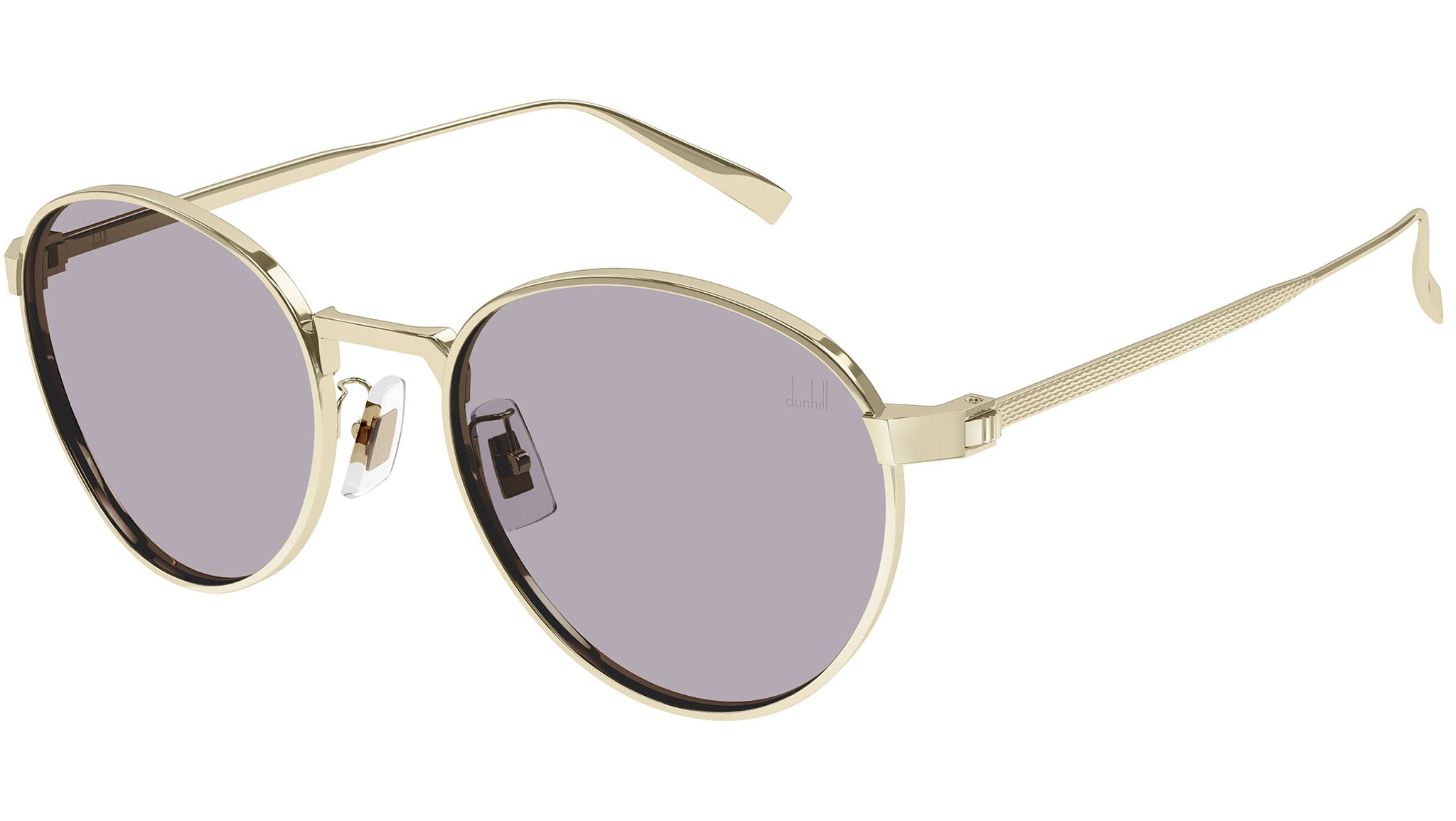 Occhiali da sole Dunhill modello DU0034S variante colore 002 oro chiaro lucido con lenti color viola tinta unita.