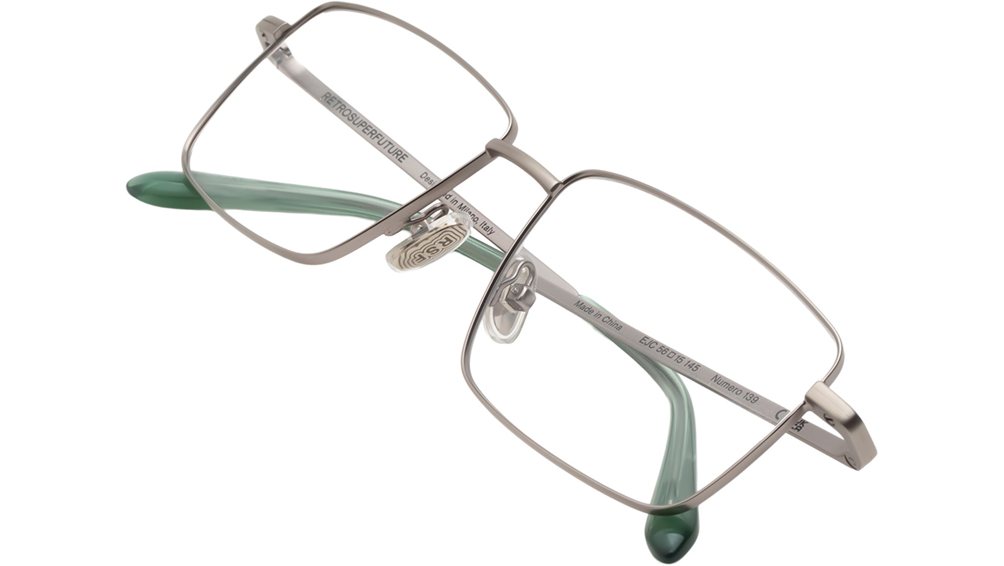 Montatura per occhiali da vista Retrosuperfuture Numero 139 Salvia con montatura in metallo verde e lenti demo. Codice modello: EJC. Made in Italy. Rivenditore autorizzato RSF online. Gli occhiali vengono consegnati con custodia e accessori originali e sono coperti dalla garanzia ufficiale di 12 mesi del produttore.