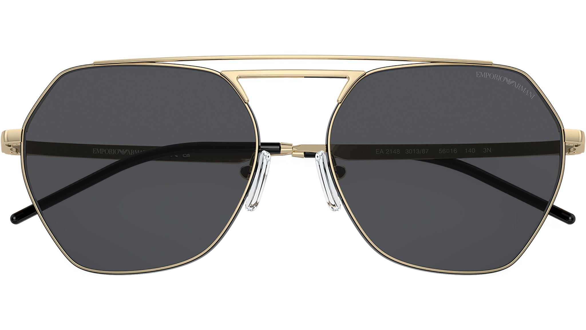 Occhiali da sole Emporio Armani linea Runway modello EA2148 codice colore 301387 con montatura full rim in metallo oro pallido lucido e lenti in policarbonato color grigio scuro. Fitting: con naselli regolabili. Linea: Runway. Codice modello: 2148. Codice colore: 301387. Rivenditore Emporio Armani autorizzato online. Tutti i modelli Armani vengono consegnati con custodia e accessori originali e sono coperti da garanzia ufficiale del produttore di 12 mesi.