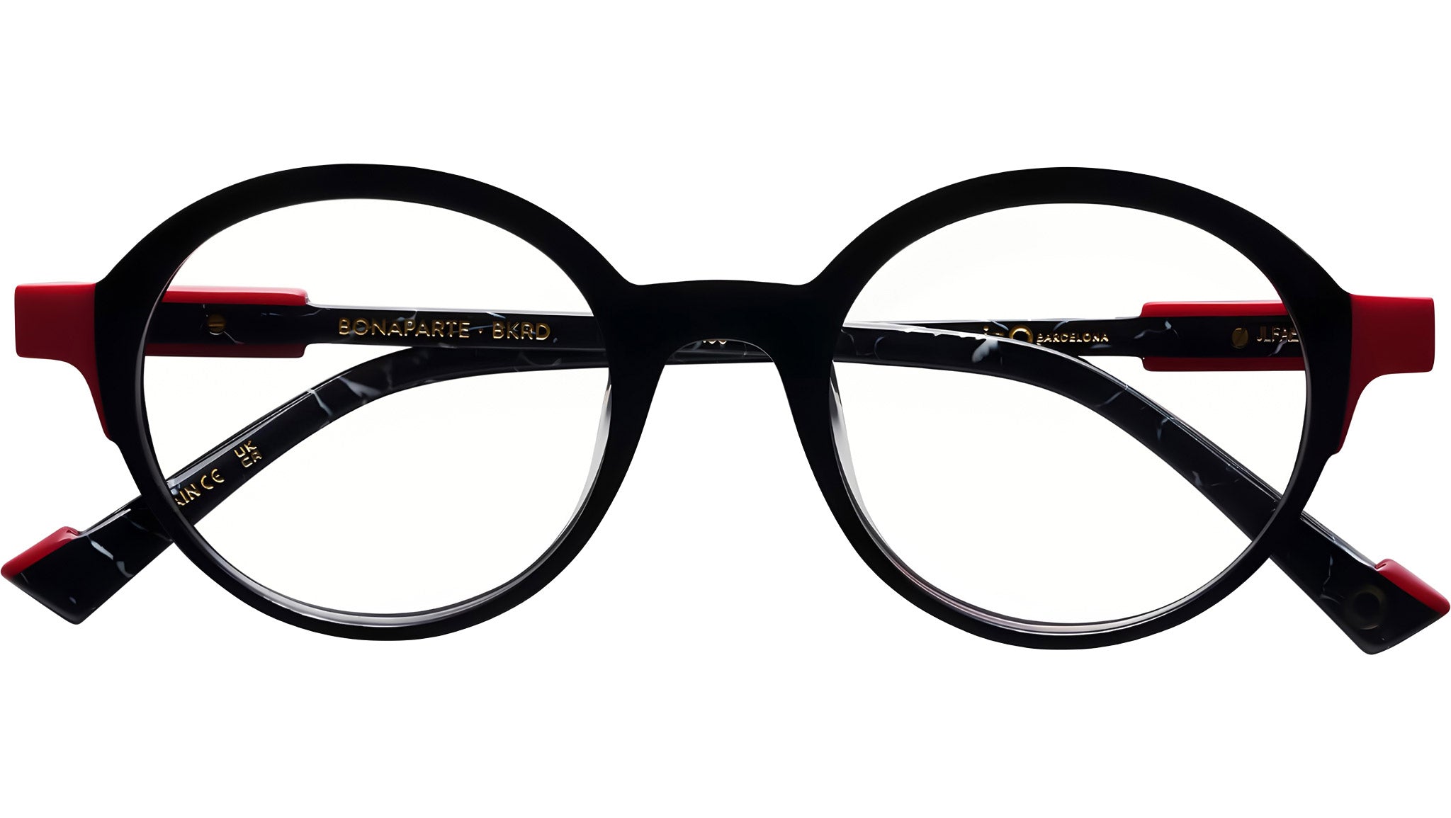 Occhiali da vista Etnia Barcelona Bonaparte in acetato nero / rosso con lenti demo. Codice modello: BONAPARTE 47O. Codice colore: BKRD. Rivenditore autorizzato online Etnia Barcelona. Gli occhiali vengono forniti con custodia e accessori originali e sono coperti dalla garanzia standard del produttore di 12 mesi.