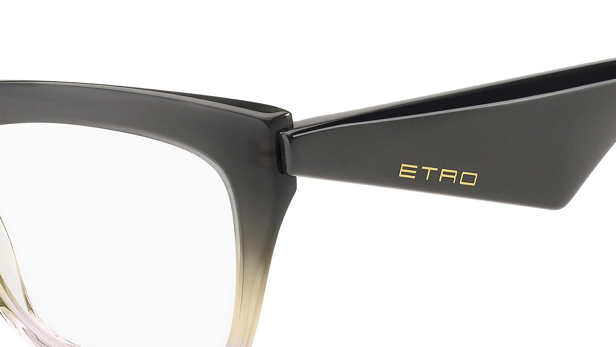 Occhiali da vista ETRO modello 0007 codice colore XYO grigio giallo con lenti demo Una sintesi del DNA moderno ed eclettico della Maison, la linea "ETRO Tailoring" combina una montatura in acetato estremamente leggera con aste triangolari dall'appeal retrò, creando un affascinante gioco di volumi e proporzioni. I terminali hanno un design iconico che richiama la simmetria del logo ETRO: un tocco distintivo che identifica tutti gli occhiali del brand. Realizzati in acetato di qualità in tinta unita o dalle tonalità sfumate, questi occhiali da vista sono completati con il logo ETRO sull'asta. Rivenditore autorizzato online ETRO Eyewear.