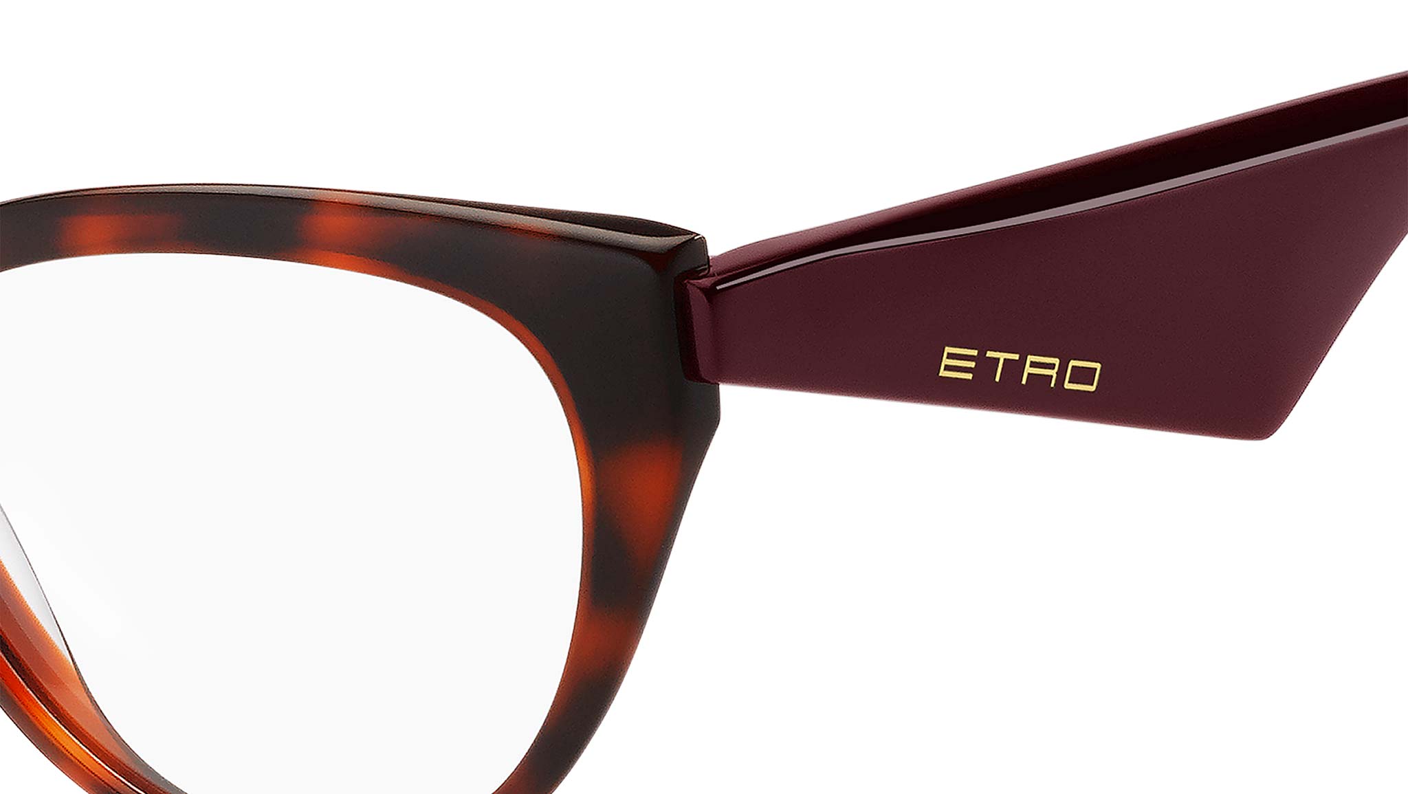 Occhiali da vista ETRO modello 0008 codice colore 086 avana con lenti demo Una sintesi del DNA moderno ed eclettico della Maison, la linea "ETRO Tailoring" combina una montatura in acetato estremamente leggera con aste triangolari dall'appeal retrò, creando un affascinante gioco di volumi e proporzioni. I terminali hanno un design iconico che richiama la simmetria del logo ETRO: un tocco distintivo che identifica tutti gli occhiali del brand. Realizzati in acetato di qualità in tinta unita o dalle tonalità sfumate, questi occhiali da vista sono completati con il logo ETRO sull'asta. Rivenditore autorizzato online ETRO Eyewear.