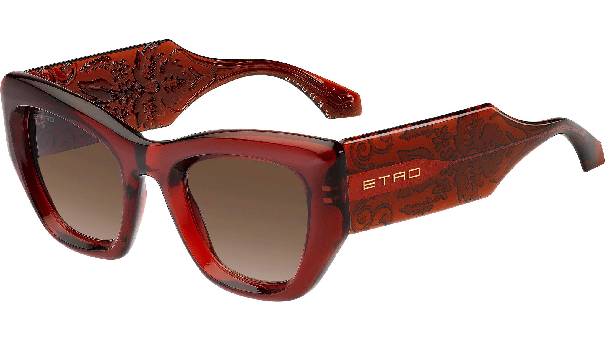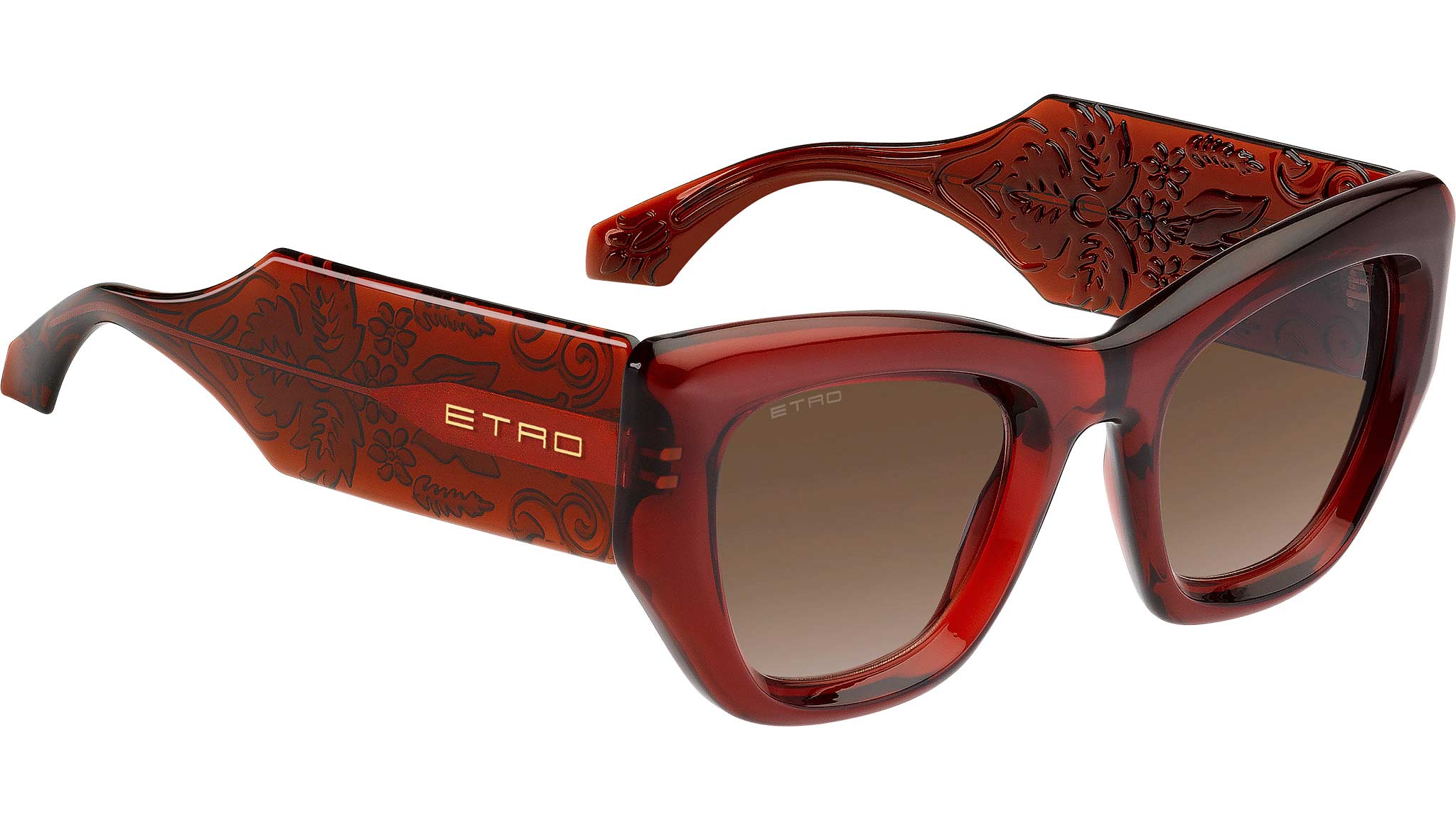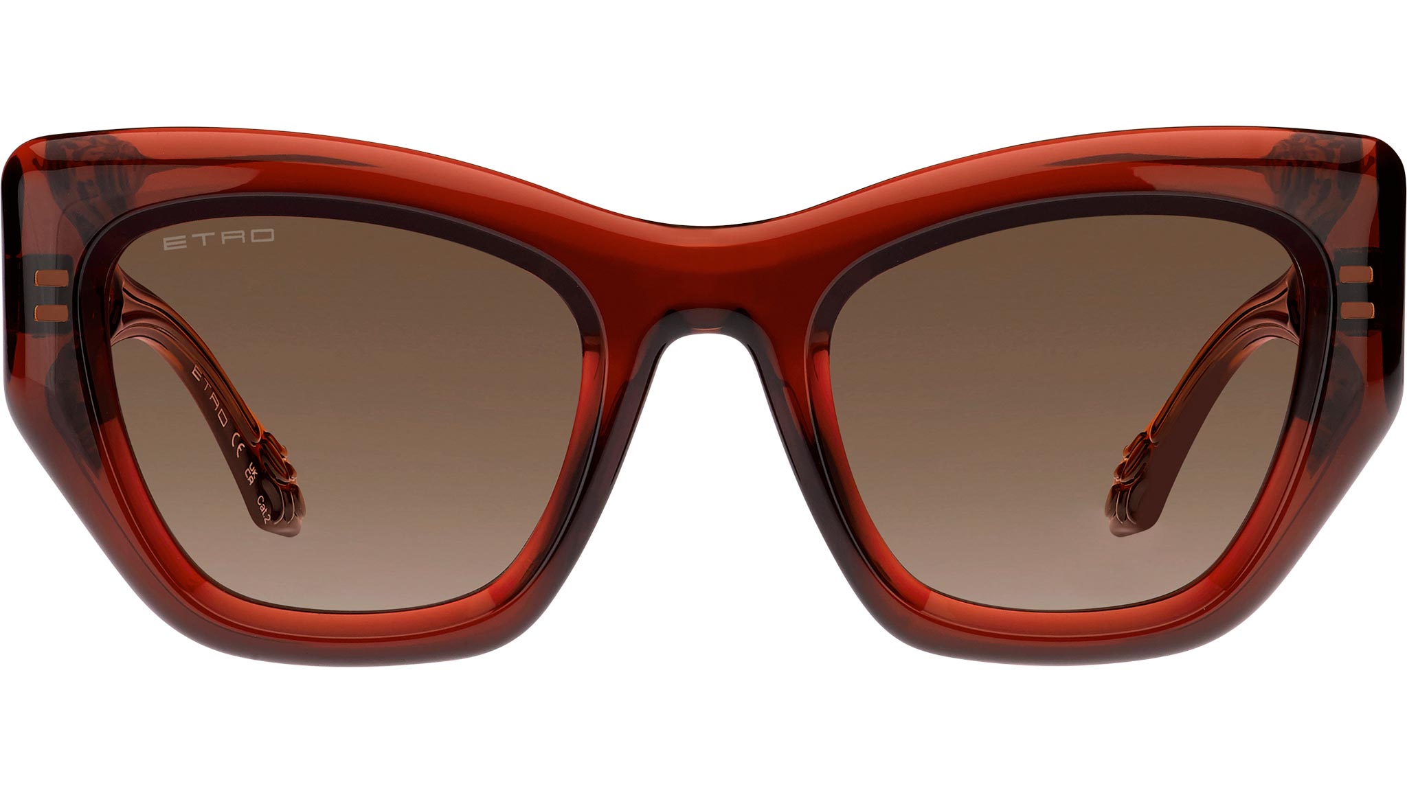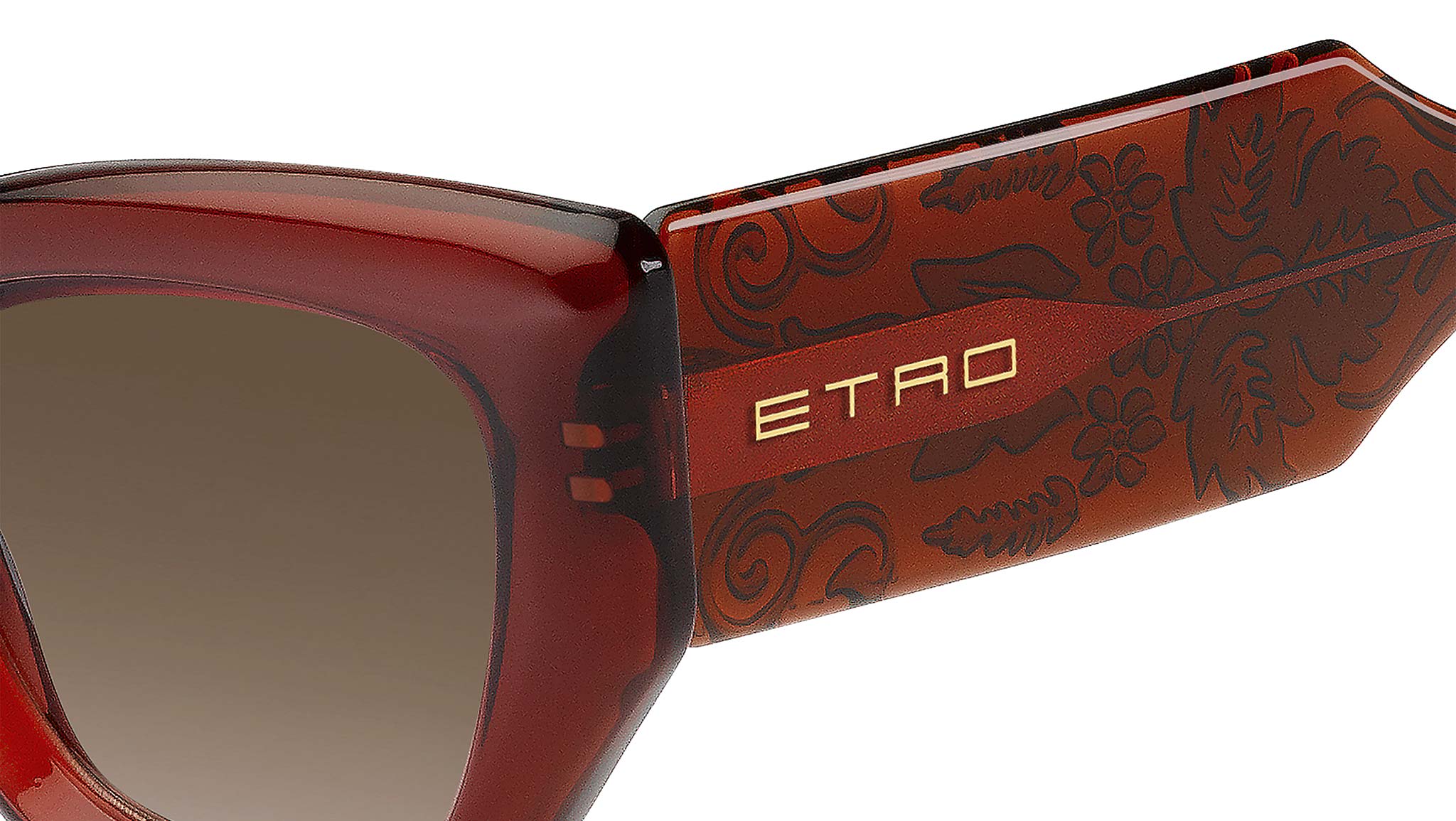 Occhiali da sole ETRO modello 0017/S codice colore 2LF HA in Injected mattone con lenti in CR-39 marrone sfumato. La collezione eyewear "Paisley" di ETRO richiama il codice stilistico più amato della Maison milanese: il motivo cashmere. Conosciuta per i suoi tessuti pregiati, ETRO ha reinterpretato questa grafica tradizionale in un'infinita varietà di espressioni e cromie. Questi occhiali da sole hanno un design leggero e confortevole, caratterizzato dall motivo paisley inciso all'interno delle aste e visibile in trasparenza. La montatura è completata da terminali iconici, lettering ETRO inciso sulle lenti e asta interna in metallo con logo color oro per un tocco prezioso. Rivenditore autorizzato online Dsquared2.