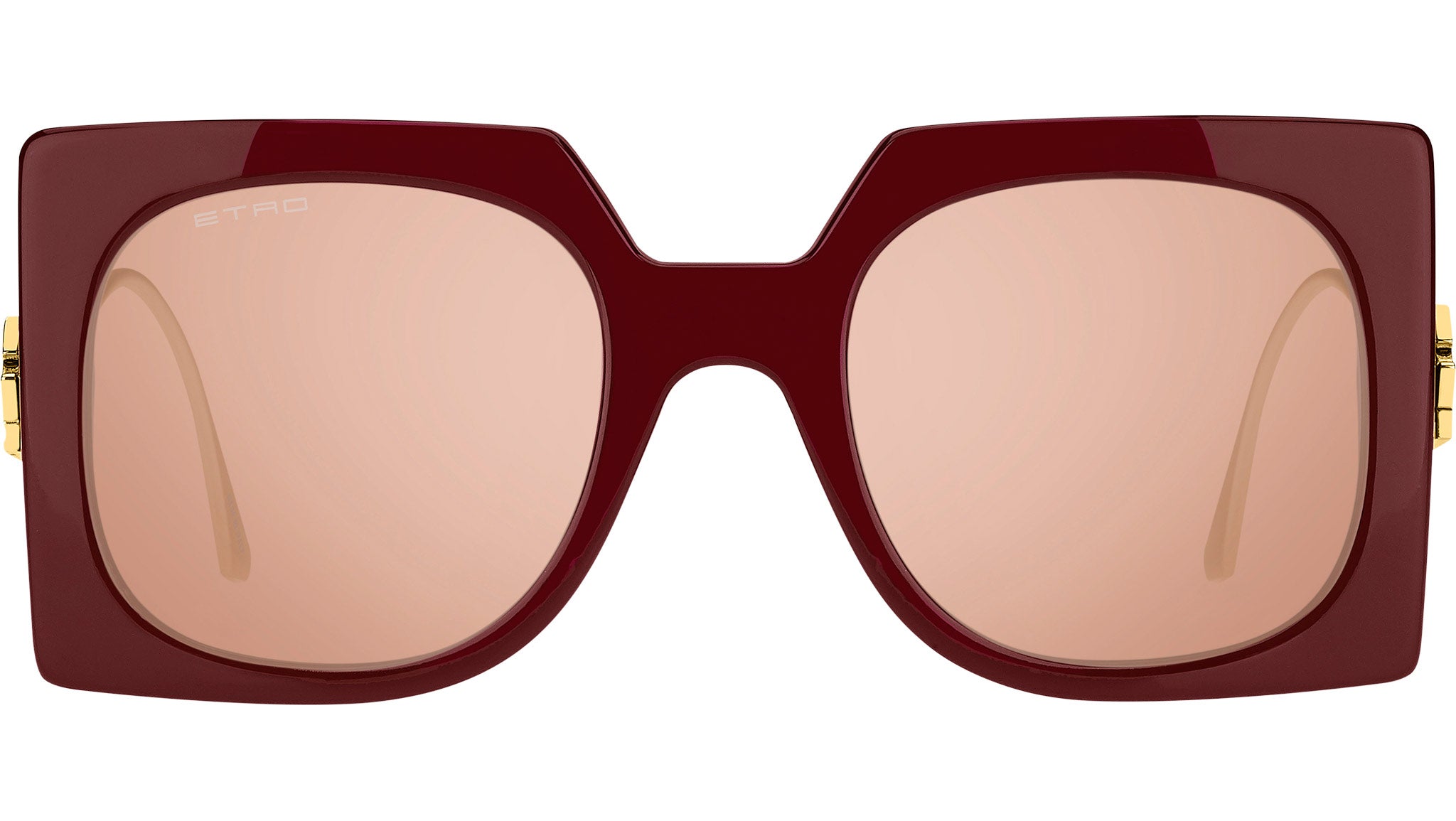 Occhiali da sole ETRO modello 0026/S codice colore LHF 2S in acetato bordeaux con lenti in CR-39 rosa flash argento. Parte della collezione eyewear "Bold Pegaso", questi occhiali da sole da donna ETRO si caratterizzano per la forma unica delle aste: un arco in metallo ispirato alle ali del mitico Pegaso, il simbolo della fashion house milanese. La quintessenza dello stile iconico della Maison, questa montatura presenta un frontale dalle linee audaci, con bordi smussati per una maggiore leggerezza. Inserti laccati, luminosi come gioielli, e la scritta "ETRO" incisa al laser sulla lente completano il design con una nota preziosa. Rivenditore autorizzato online Dsquared2.